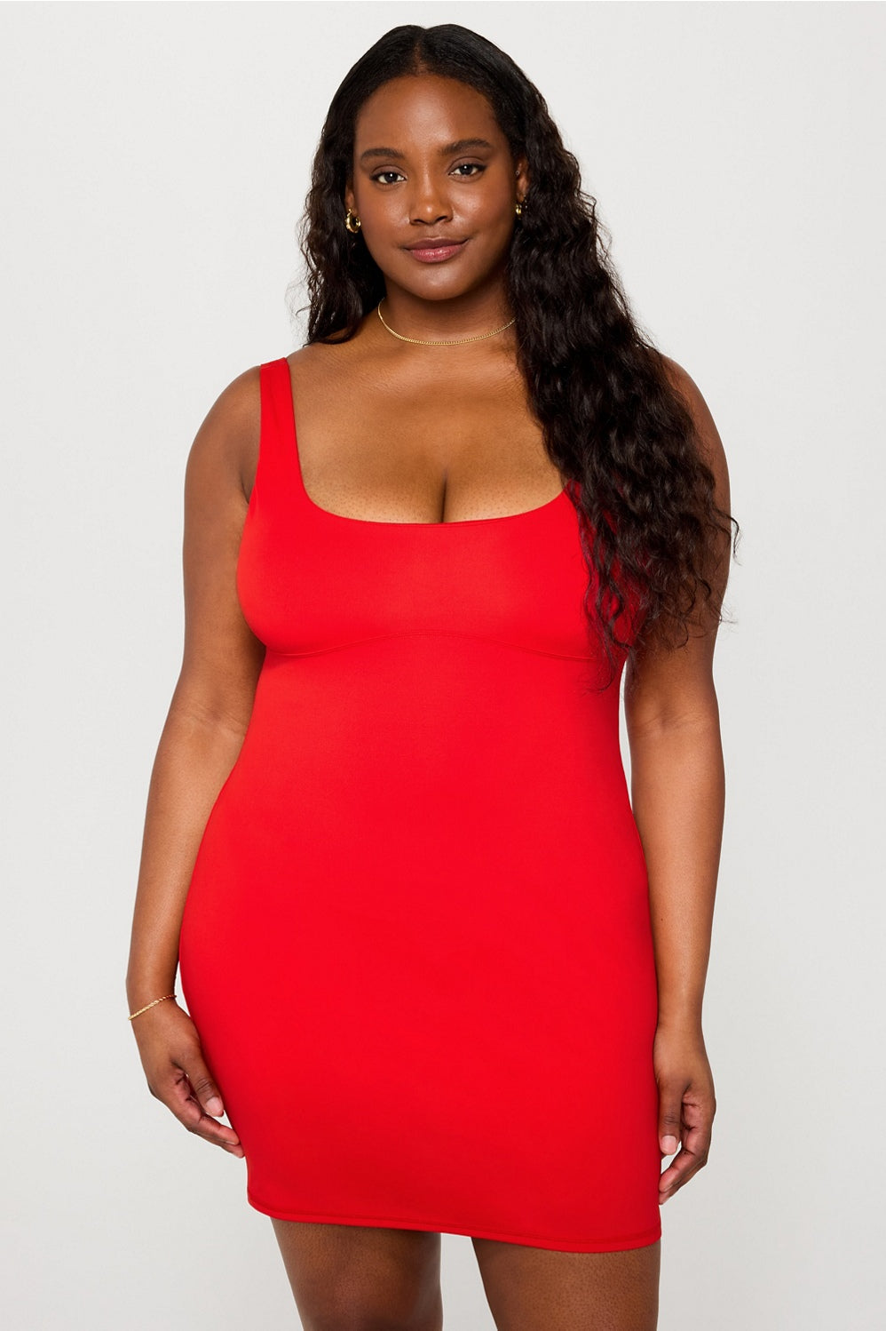 Serve looks from sunrise to last call with a mini bodycon fit, flirty back, and built-in bra (for that extra oomph). Buttery-soft PureLuxe brings light compression, and moisture-wicking properties to keep you feeling as good as you look.