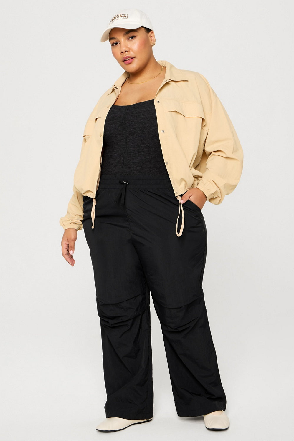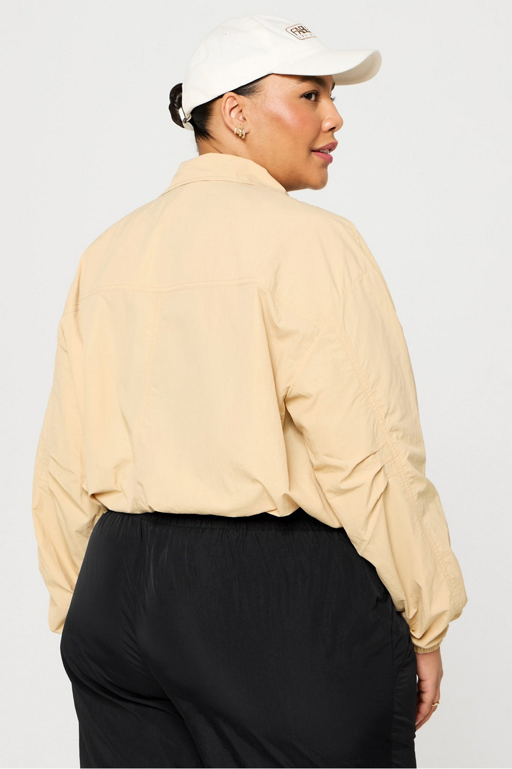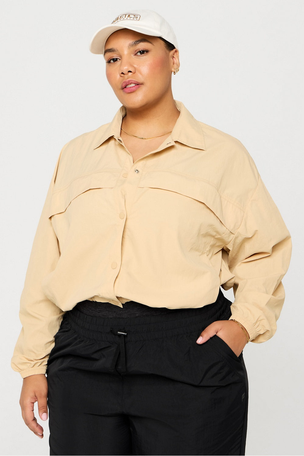 Laidback and cool. This cargo jacket is made from woven fabric and features chest pockets and snap buttons. Layer it over your favorite activewear or baggy pants for an effortlessly stylish look