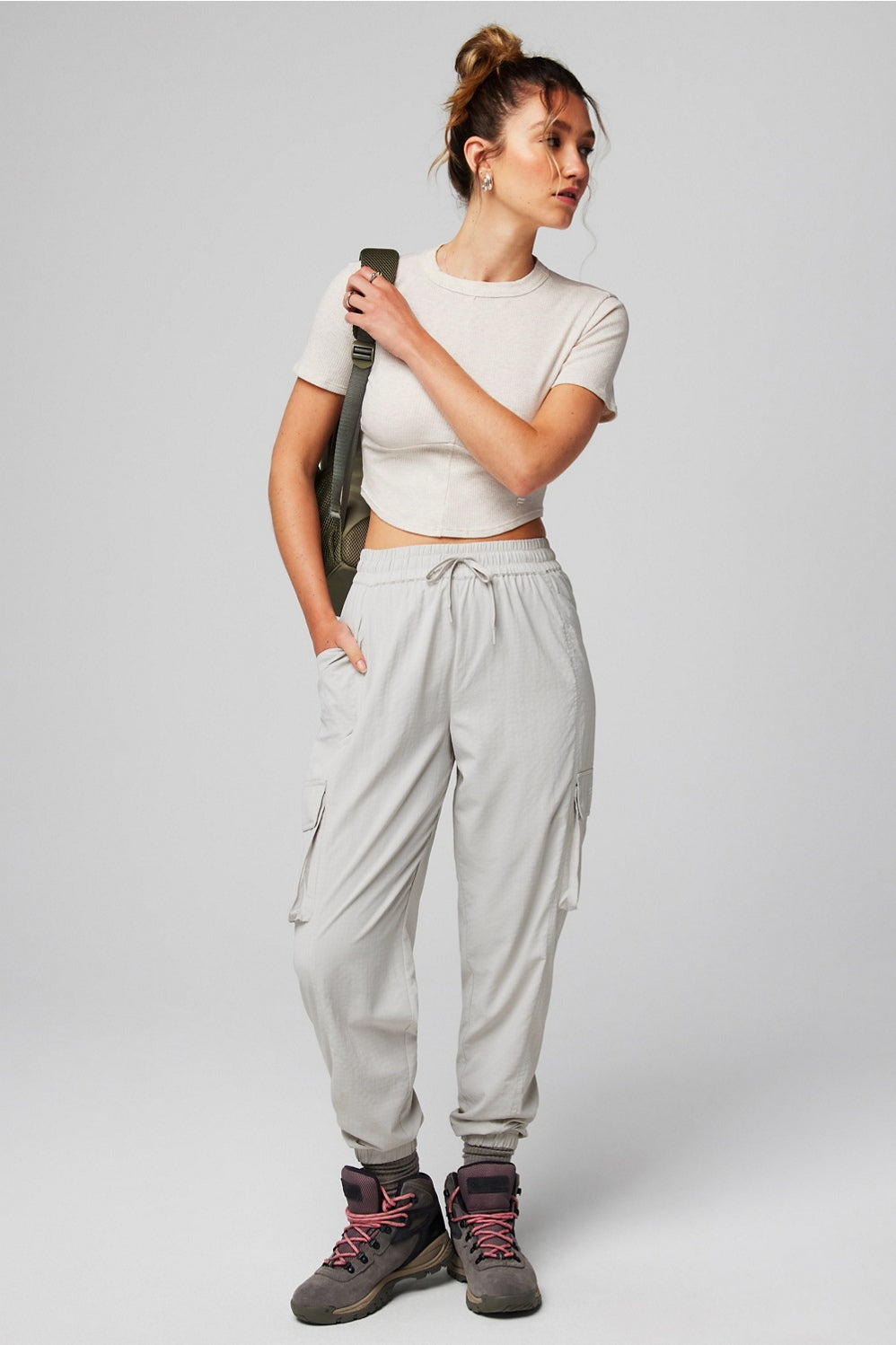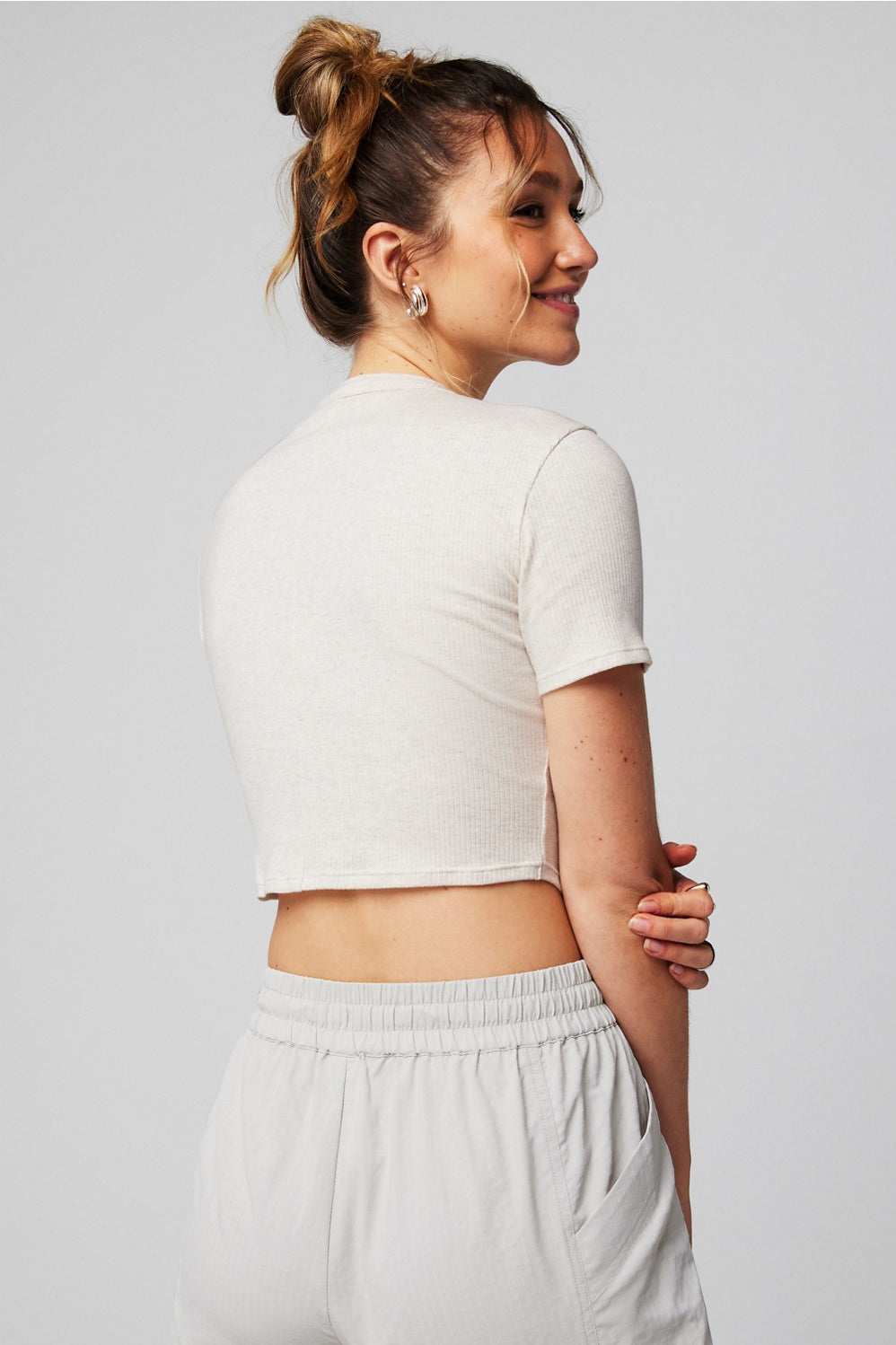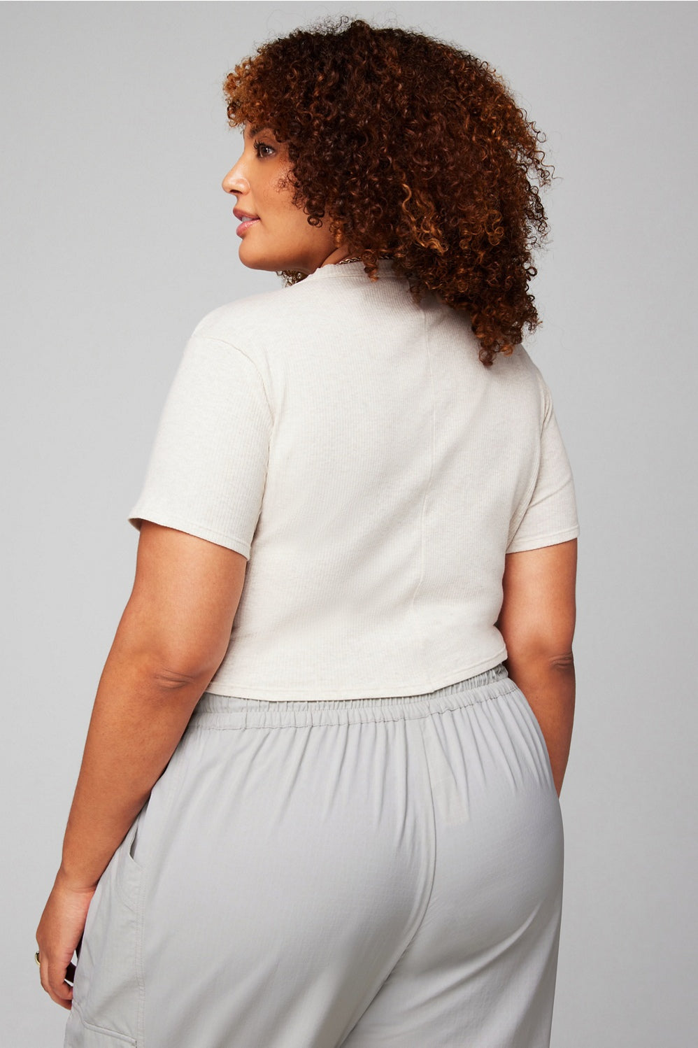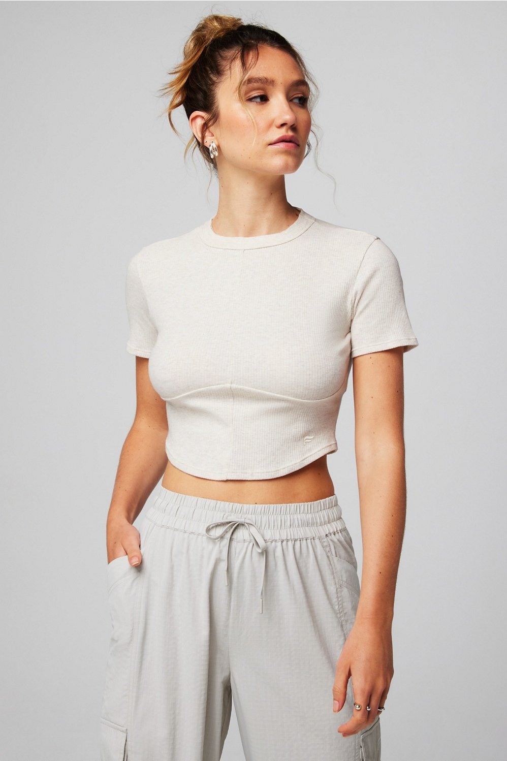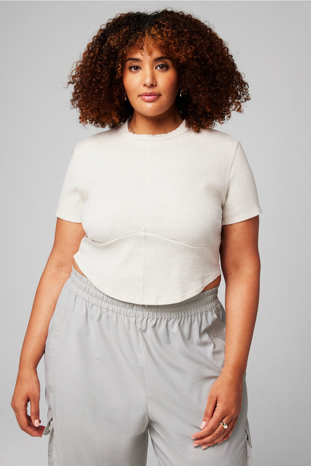 A classic baby tee, with a twist. This ribbed, fitted top is the perfect pair for everything from shorts to denim, designed with flattering seams and a chic curved hem. The cotton fabric is ultra breathable with a slight stretch for everyday comfort.