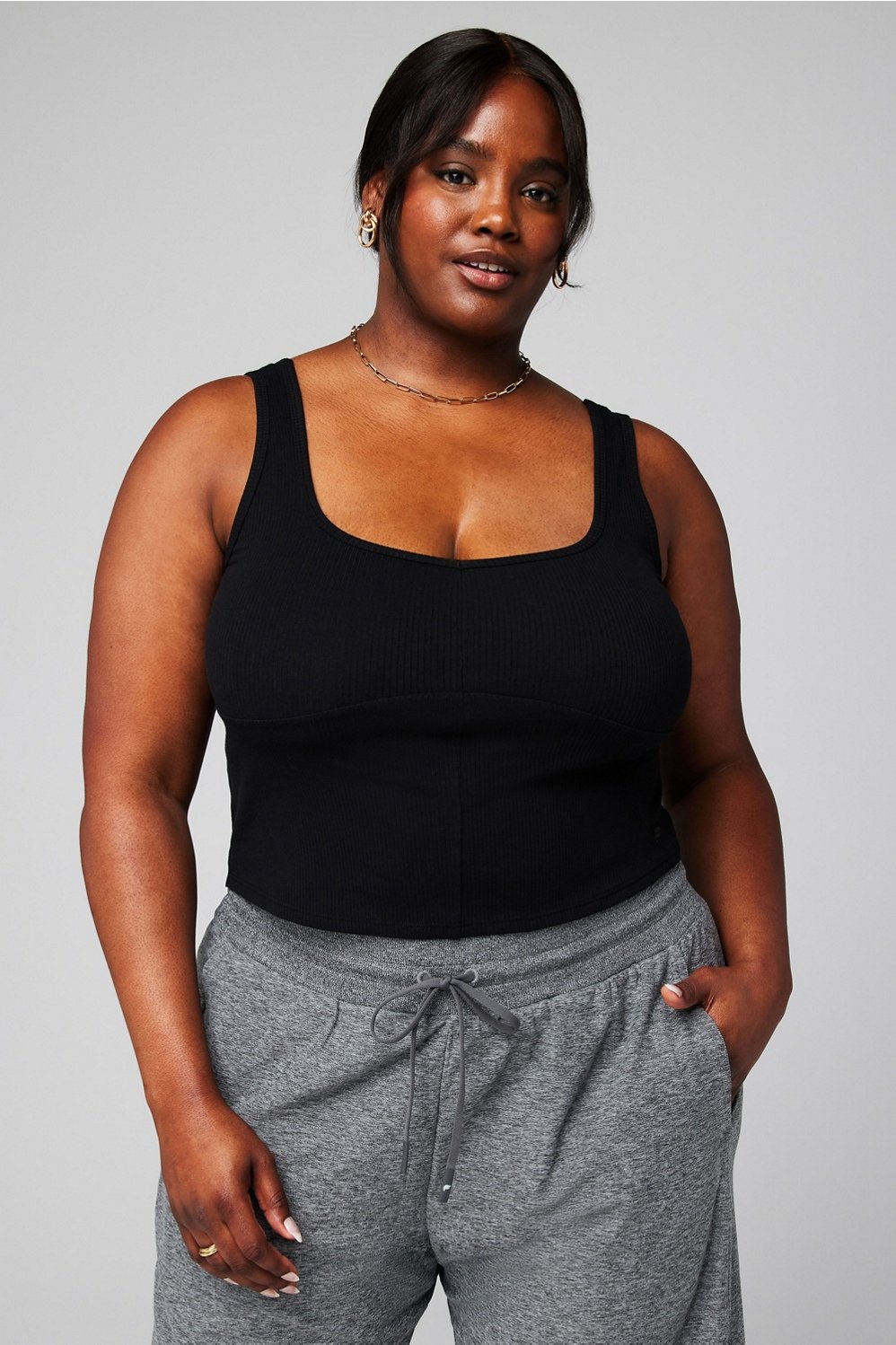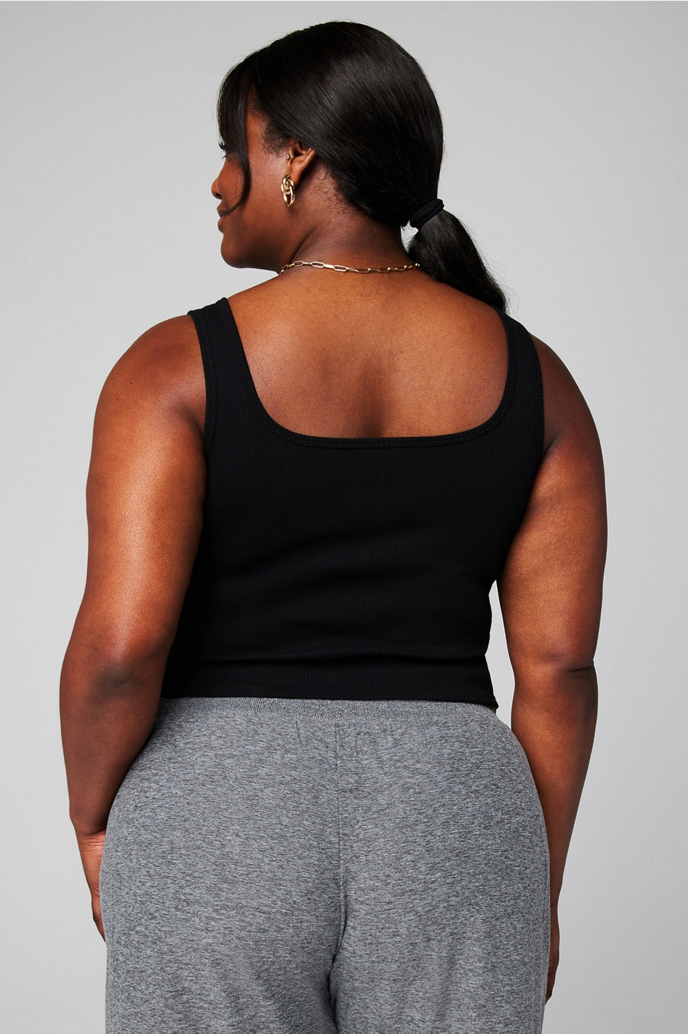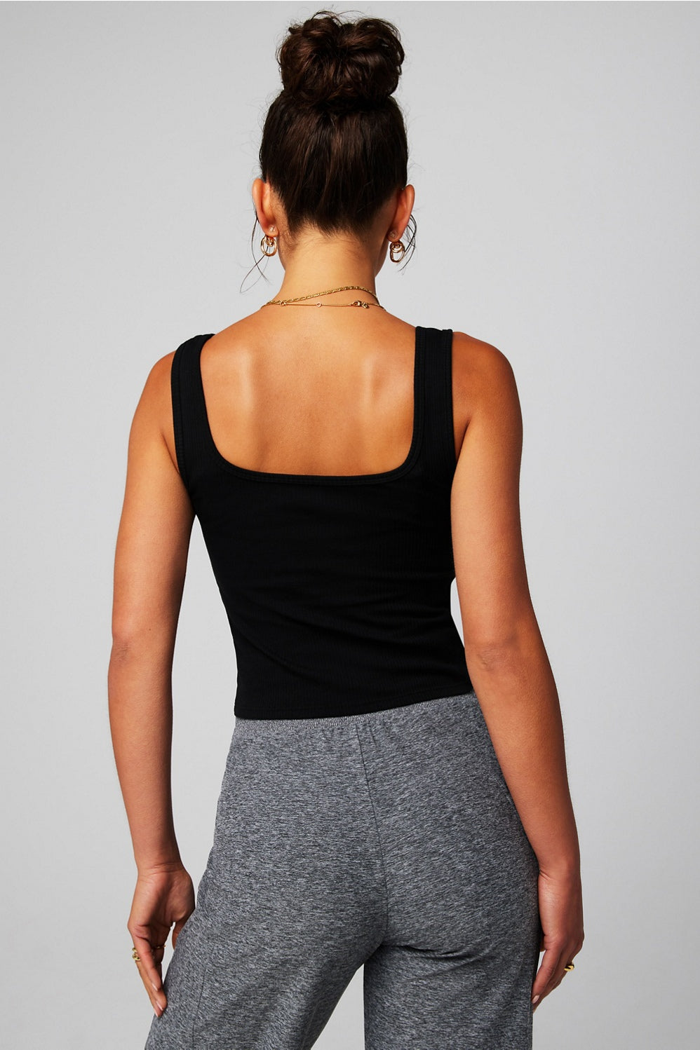 Light layers never looked so good. This ribbed tank is the perfect pair for everything from shorts to denim, designed with flattering seams and a chic curved hem. The cotton fabric is ultra breathable with a slight stretch for everyday comfort.