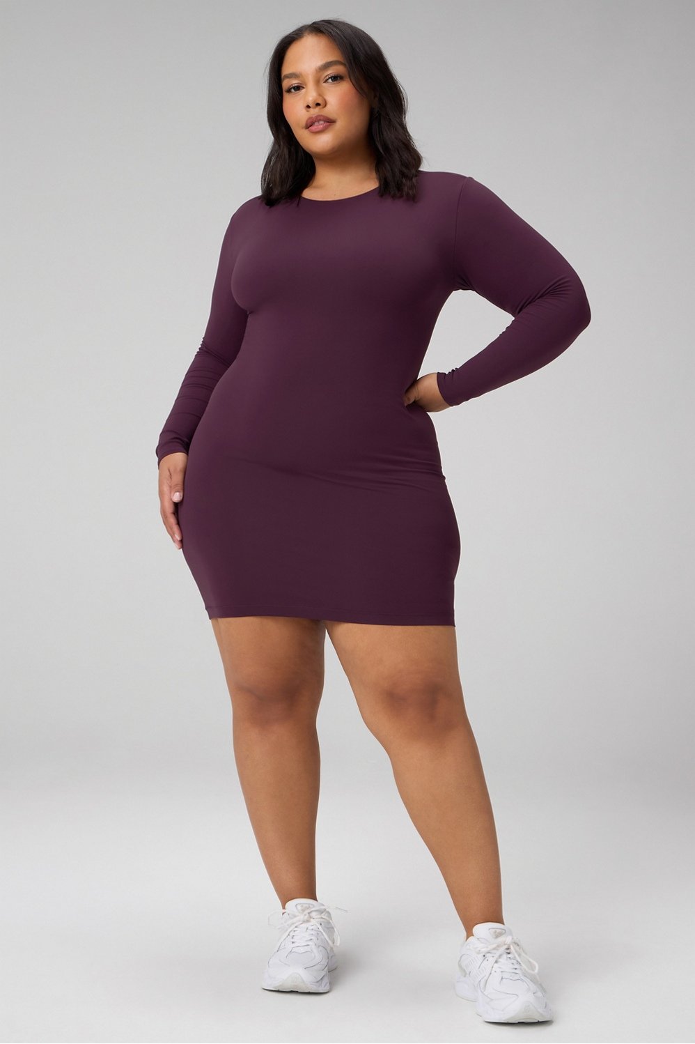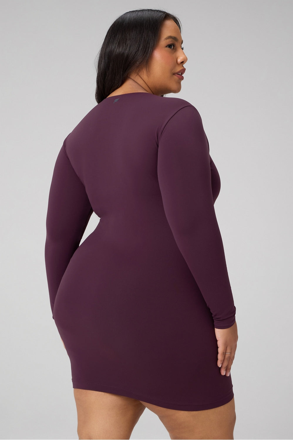 Delectably soft with light compression that hugs, smooths, and moves with you. Double-layered with 4-way stretch, this mini is built for all-day wear. Fitted silhouette, long sleeves, and a barely-there feel—she's ready for sneakers by day and heels by night.