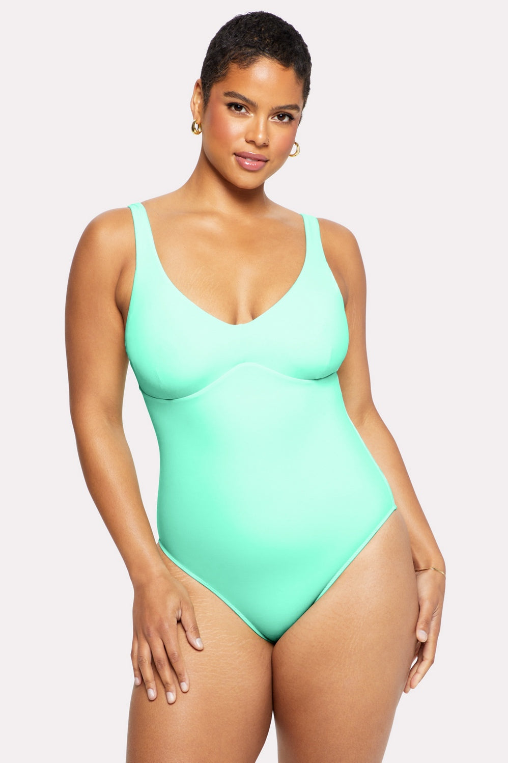One word: Snatched! Demi cups support your bust while medium compression shapes all over for a smooth back and core, plus a cinched waist. This comfy and chic swimsuit was made to fit you (and not the other way around).