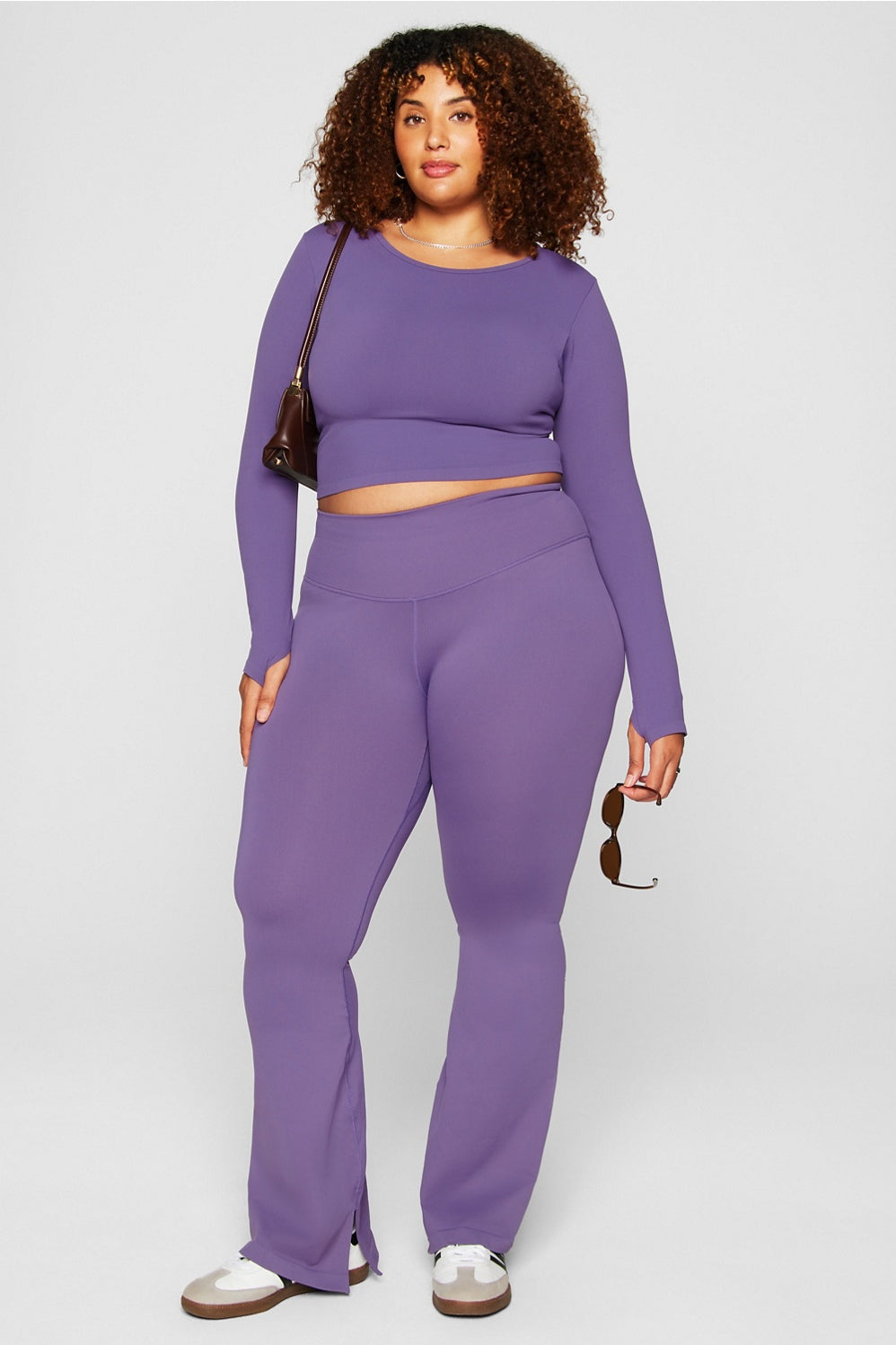 Get SNATCHED with Sleek Seamless. Smooth with a firm, flexible hold, these high-waisted pants are a dream. Max-compression waistline keeps you shaped and smooth, while the ribbed texture defines and enhances your booty, leading to a split-flared hem.