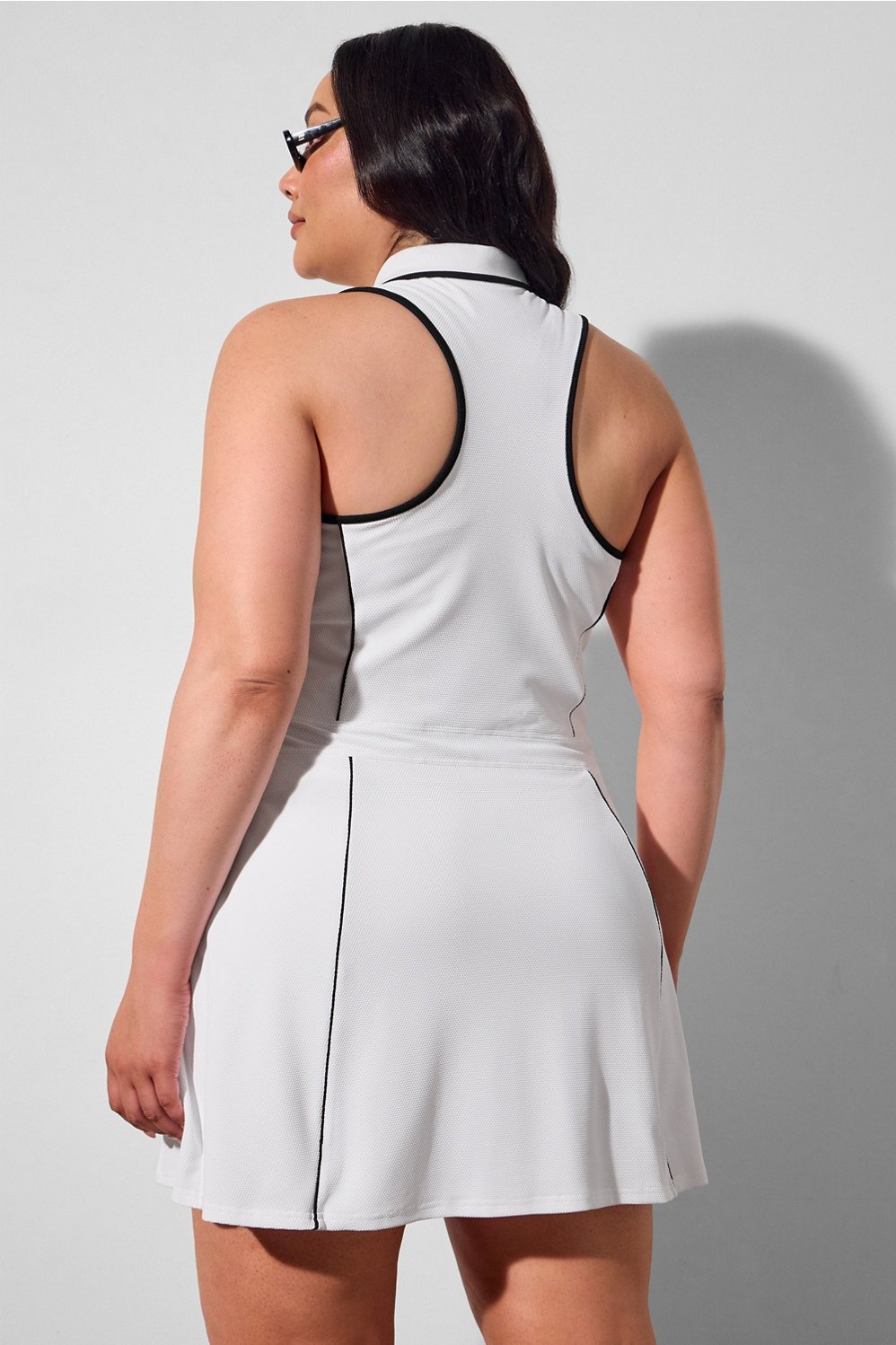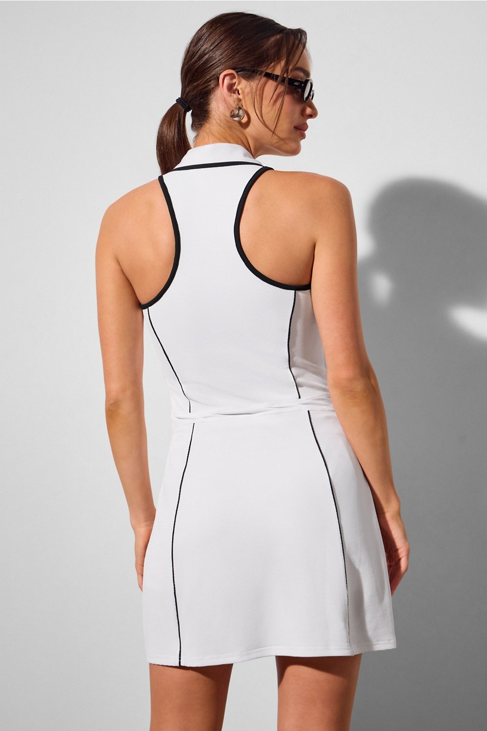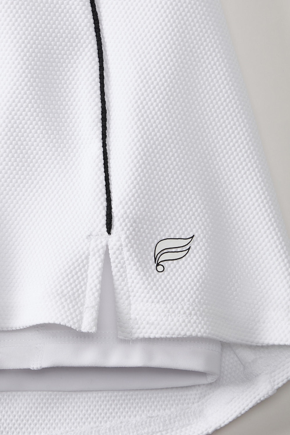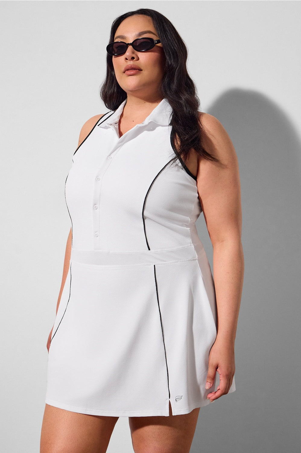 Malbon Golf co-creators Stephen & Erica Malbon bring their signature vision to an ultra-limited collection, exclusively for Fabletics. Your sporty-chic BFF. With a sleek polo neckline, flirty mini length, and breathable textured performance jacquard, she’s ready for weekend plans whether it's course-to-court moments or a coffee run. Built-in Pureluxe shorts are buttery soft, bathroom friendly, and made for all-day comfort because cute should be effortless.