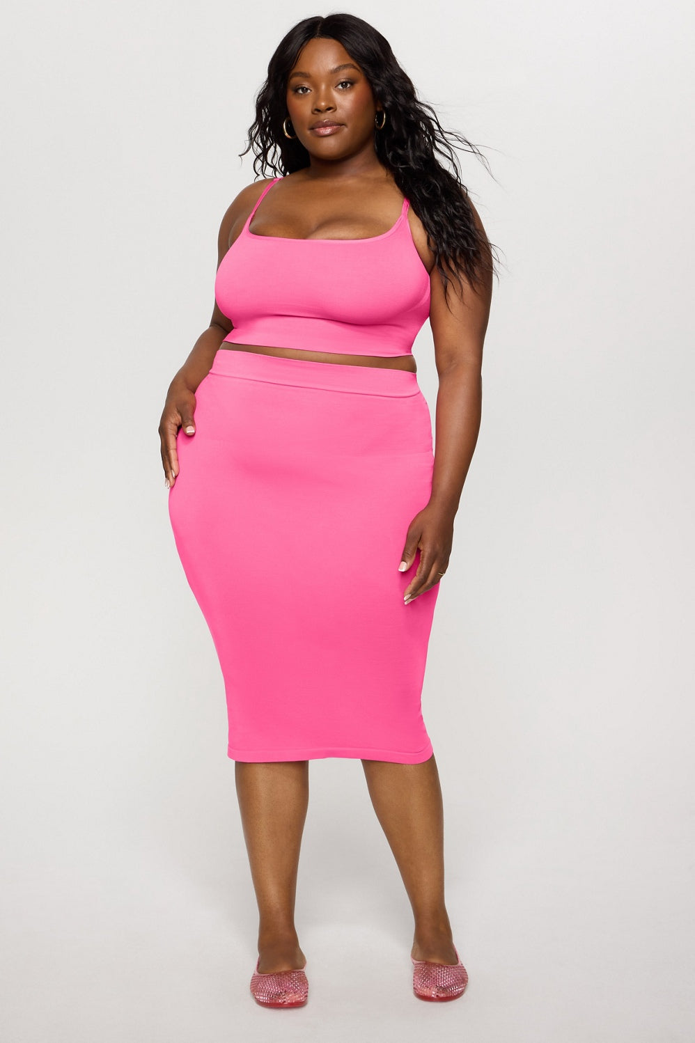 Your go-to midi with hidden shaping to smooth your tummy and back. This curve-enhancing skirt is a sleek, flattering essential that elevates any look—perfect for desk-to-dinner styling and beyond. Pair with our Shaping Tee and make it a matching set.