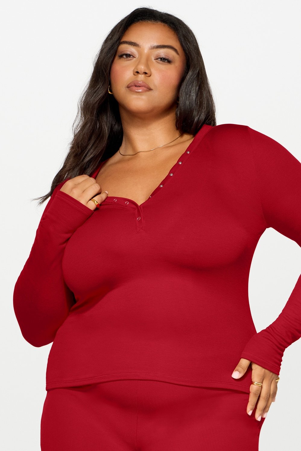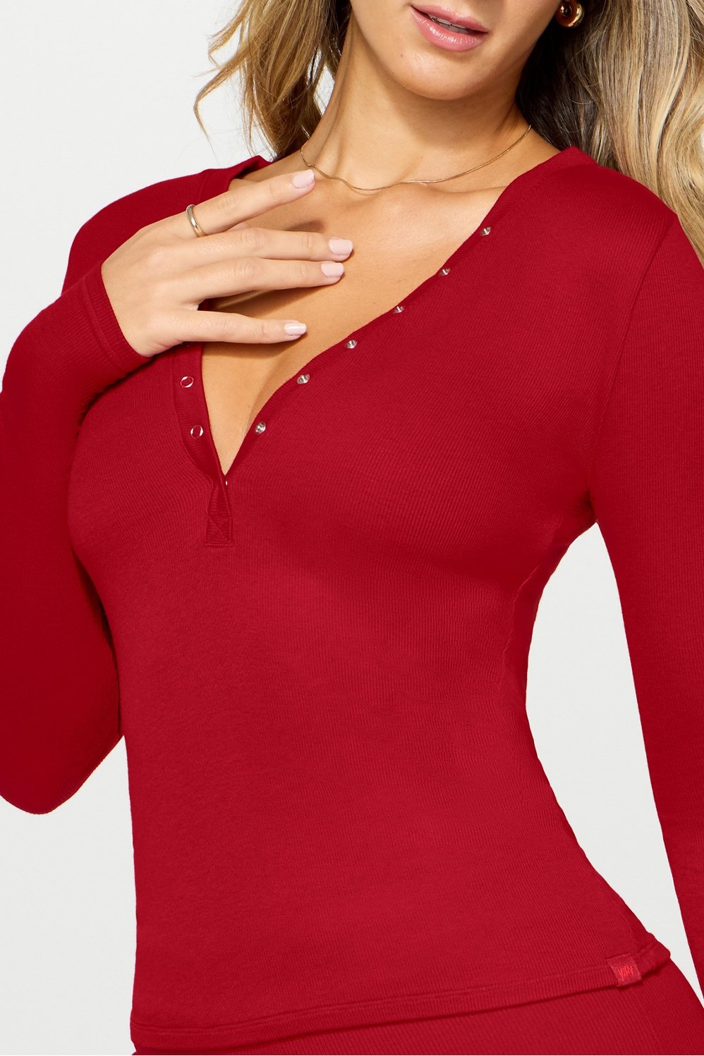 Softness that speaks for itself. This ribbed modal long sleeve henley features a snap-button closure to show a little or a lot?ÛÓyour call. An everyday essential with endless versatility you need in every color.