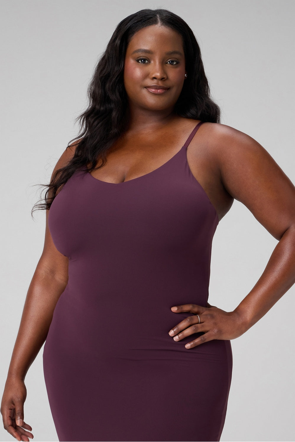 Designed to keep you snatched, and pulled together all day. With light compression and 4-way stretch, this seamless wonder flatters every body type. The ultra-smooth fabric, strappy back, maxi hem, and flirty V-neck? Made to turn heads. From farmers— market photo ops to spicy nights out you'll be reaching for this one on repeat.