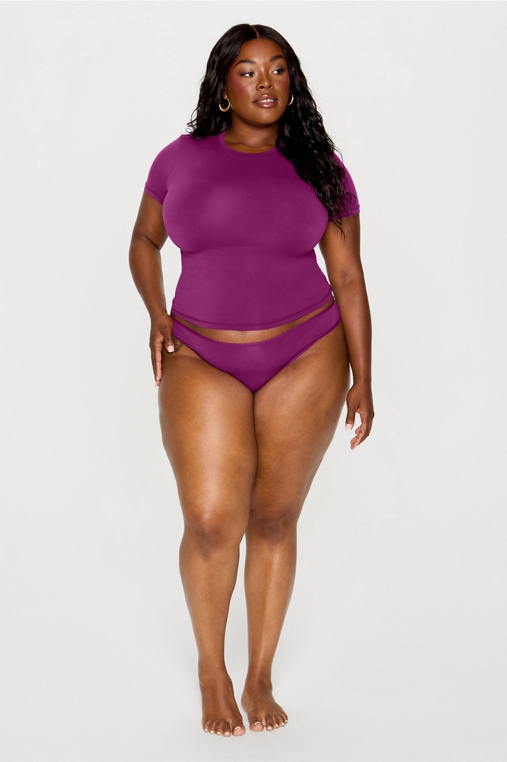 The perfect short sleeve tee you’ve been searching for. Made with soft, stretchy single-layer fabric for a lightweight, barely-there feel and a body-hugging fit—it’s the elevated essential your closet’s been missing. So good, one color won’t be enough.