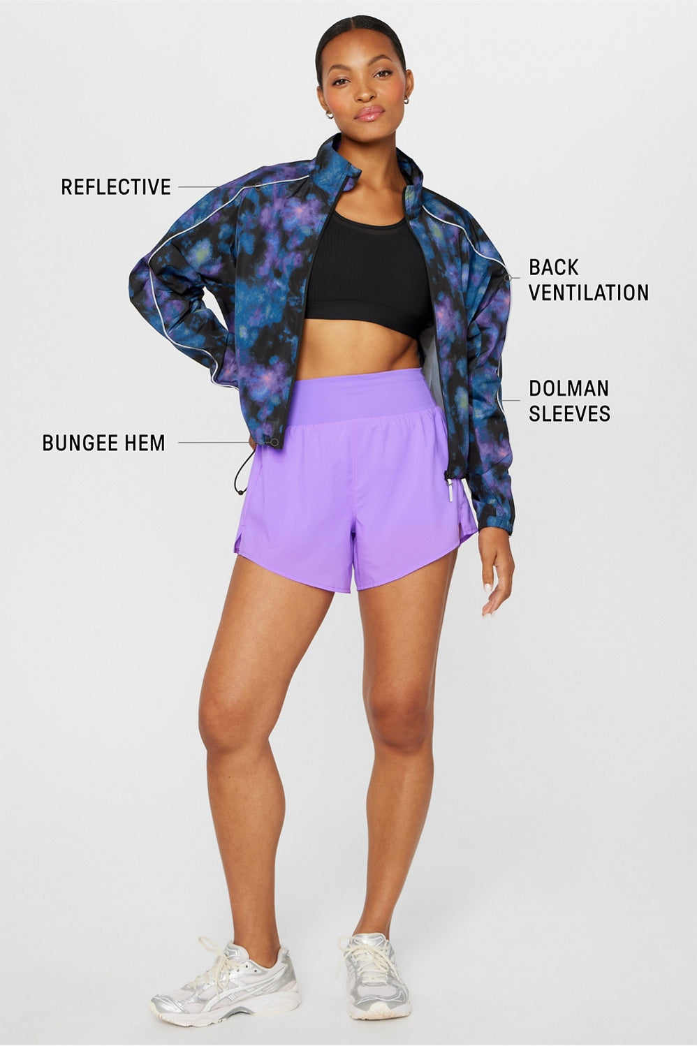 Don't hold back. Perfect for morning errands or evening strolls, this wind-resistant jacket delivers just the right amount of warmth and freedom to move. The cinchable waist, form-fit, and reflective piping make it effortlessly iconic & practical.