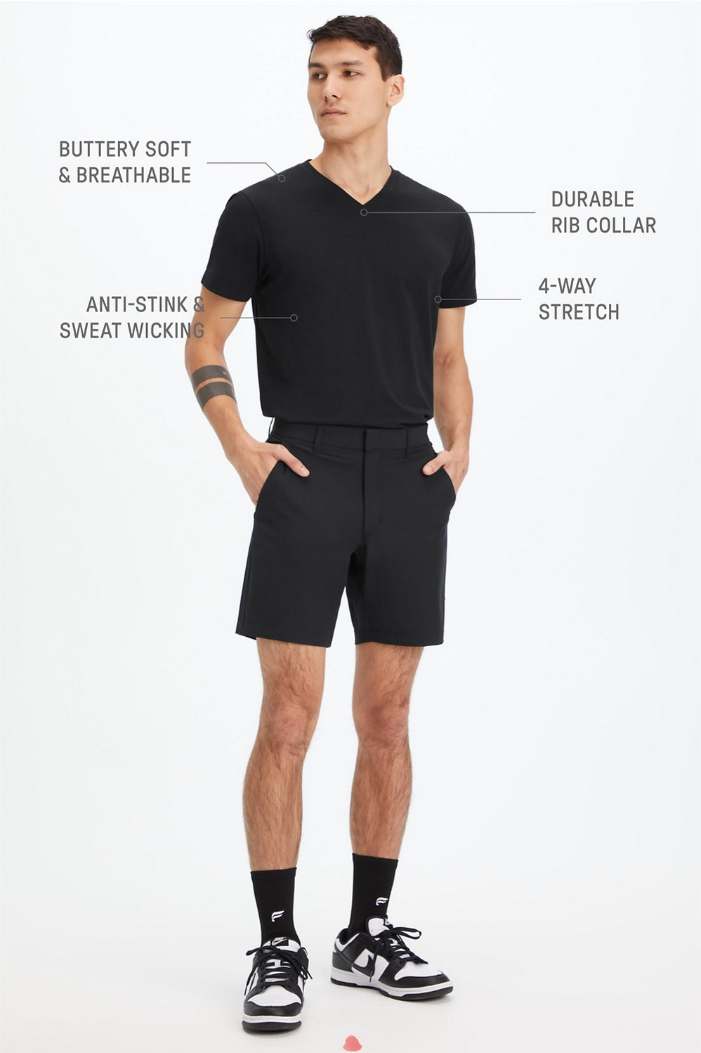 Hang out or hit the gym in this everyday staple. Made with soft, breathable fabric and armed with sweat-wicking, anti-stink tech, this versatile V-neck is perfect for guys on the go.