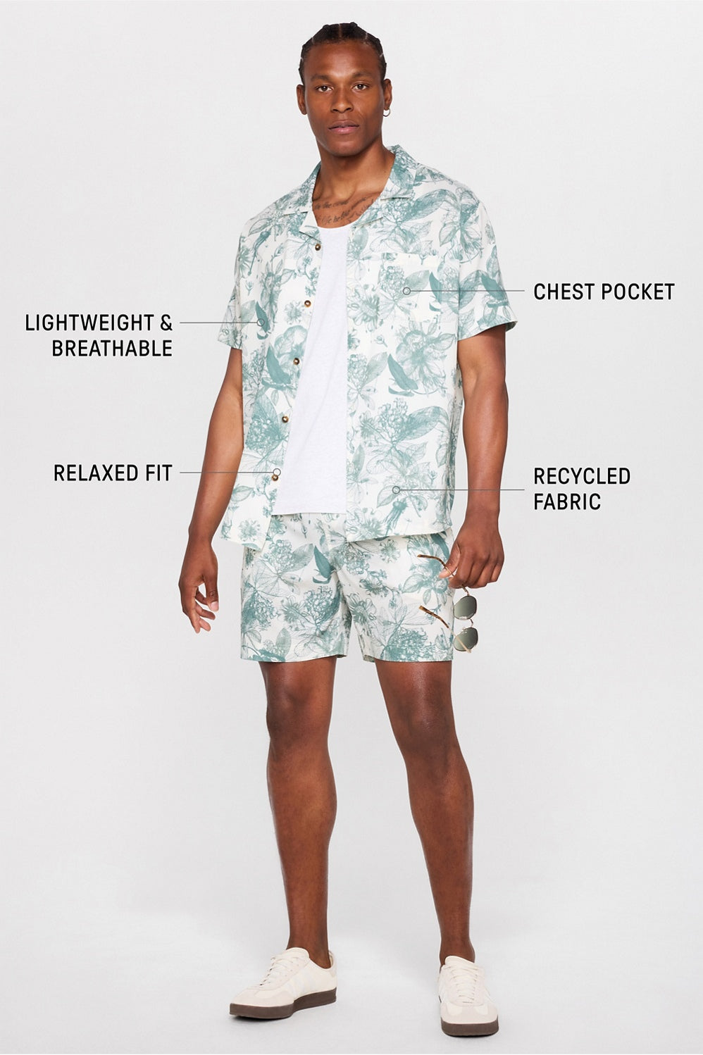 Incoming heatwave? Poolside, oceanside, or just outside, this lightweight crepe tech button up will keep you cool and dry thanks to moisture-wicking fabric.