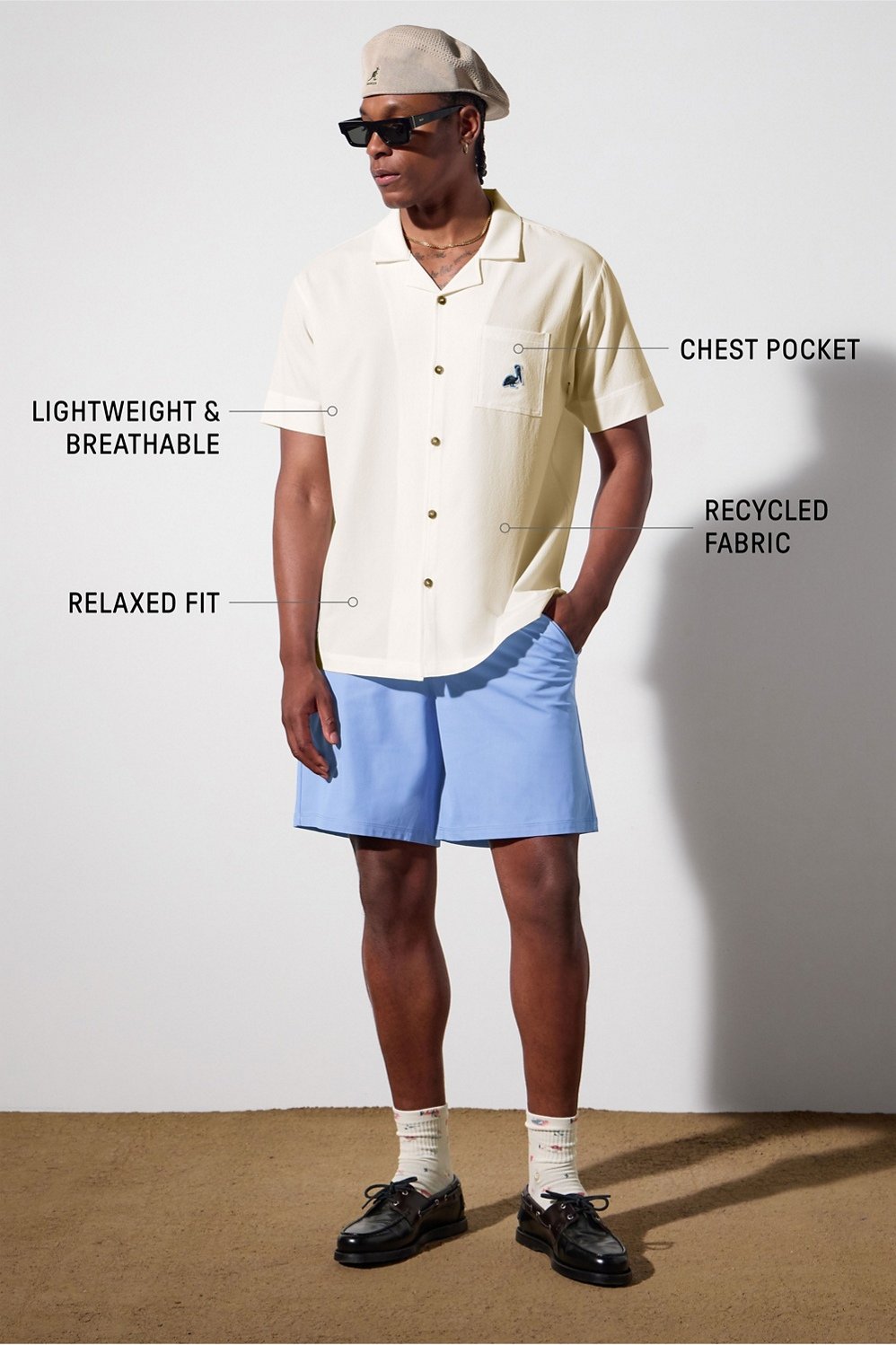 Malbon Golf co-creators Stephen & Erica Malbon bring their signature vision to an ultra-limited collection, exclusively for Fabletics. Incoming heatwave? Poolside, oceanside, or out on the course, this lightweight crepe tech button up will keep you cool and dry thanks to moisture-wicking fabric. Finished with a signature embroidered animal patch, inspired by the coastal, desert, and pine regions.