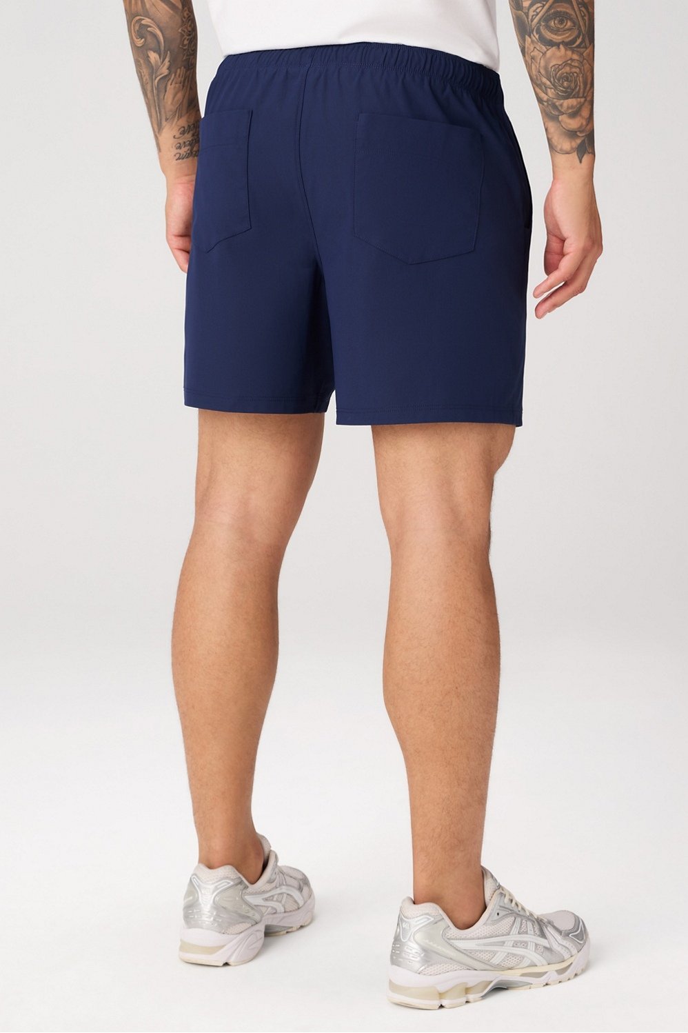 A polished twist on a laid-back classic. Our wrinkle-resistant fabric meets an elasticated waistband and easy fit for ultimate comfort. Side and back pockets keep your things close while an 6” inseam hits right above the knee.