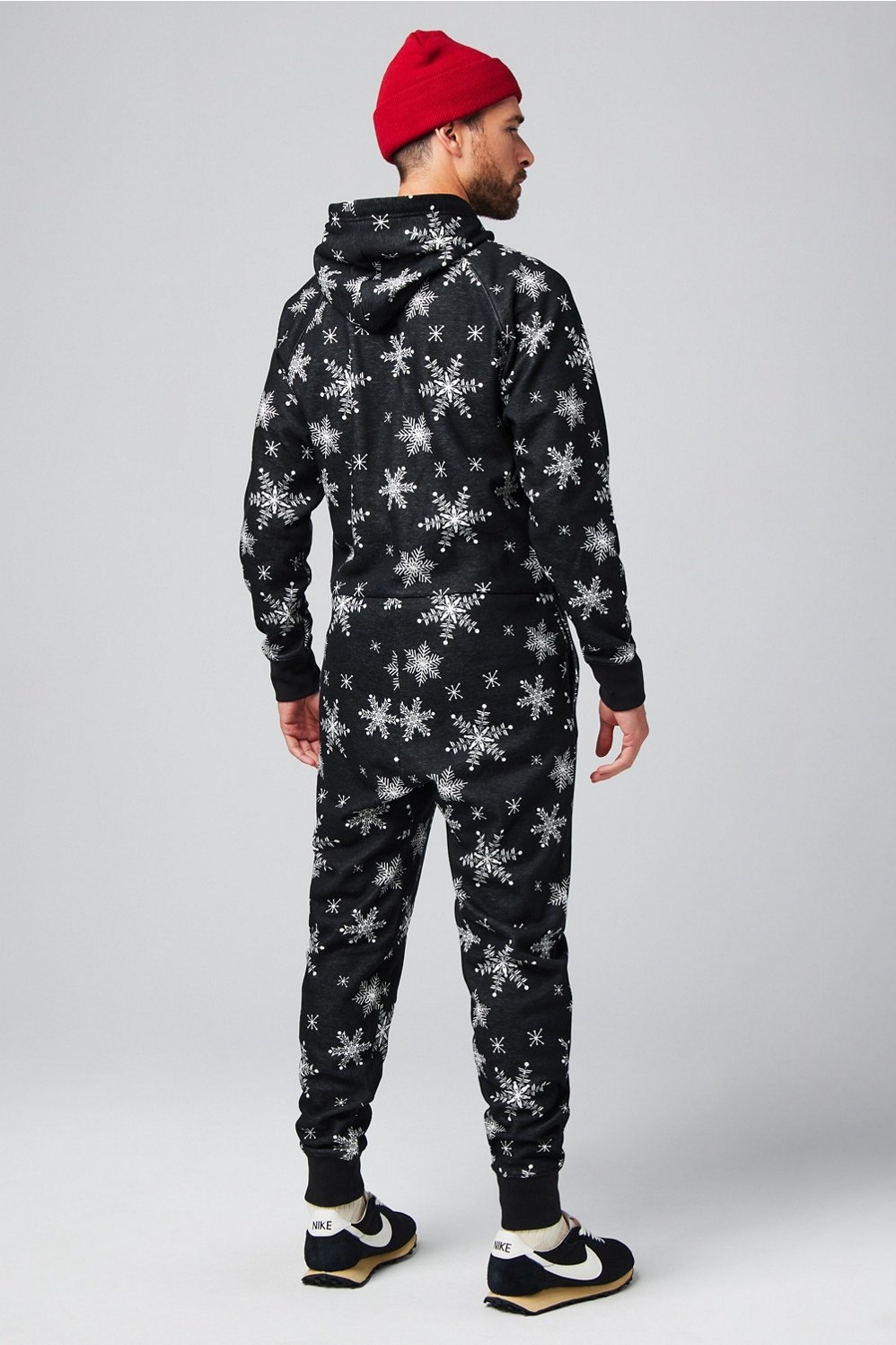 Full body comfort. This seasonal-print fleece hooded onesie is made from our softer-than-soft sweats material and will have you lounging in style all winter long.
