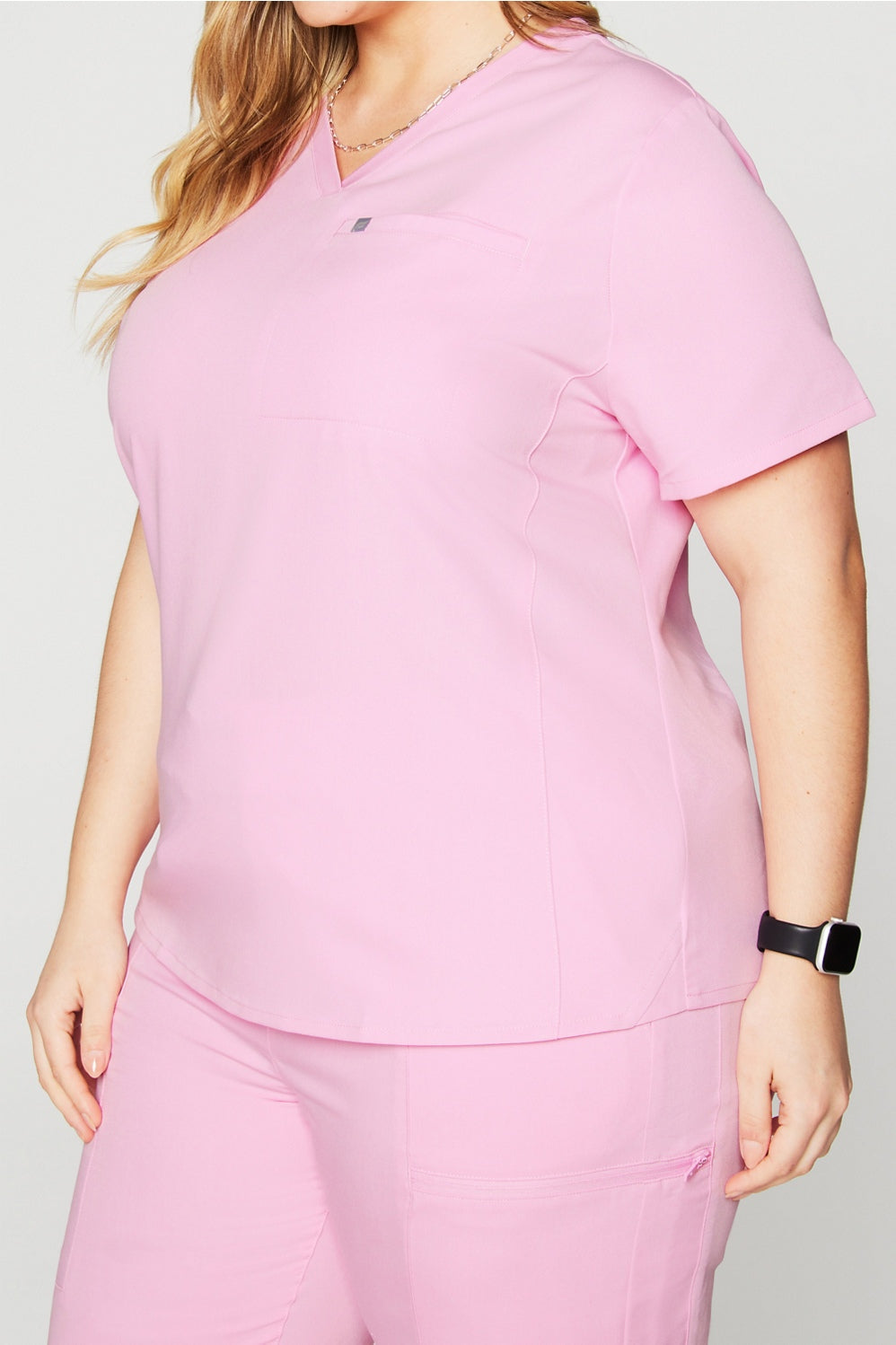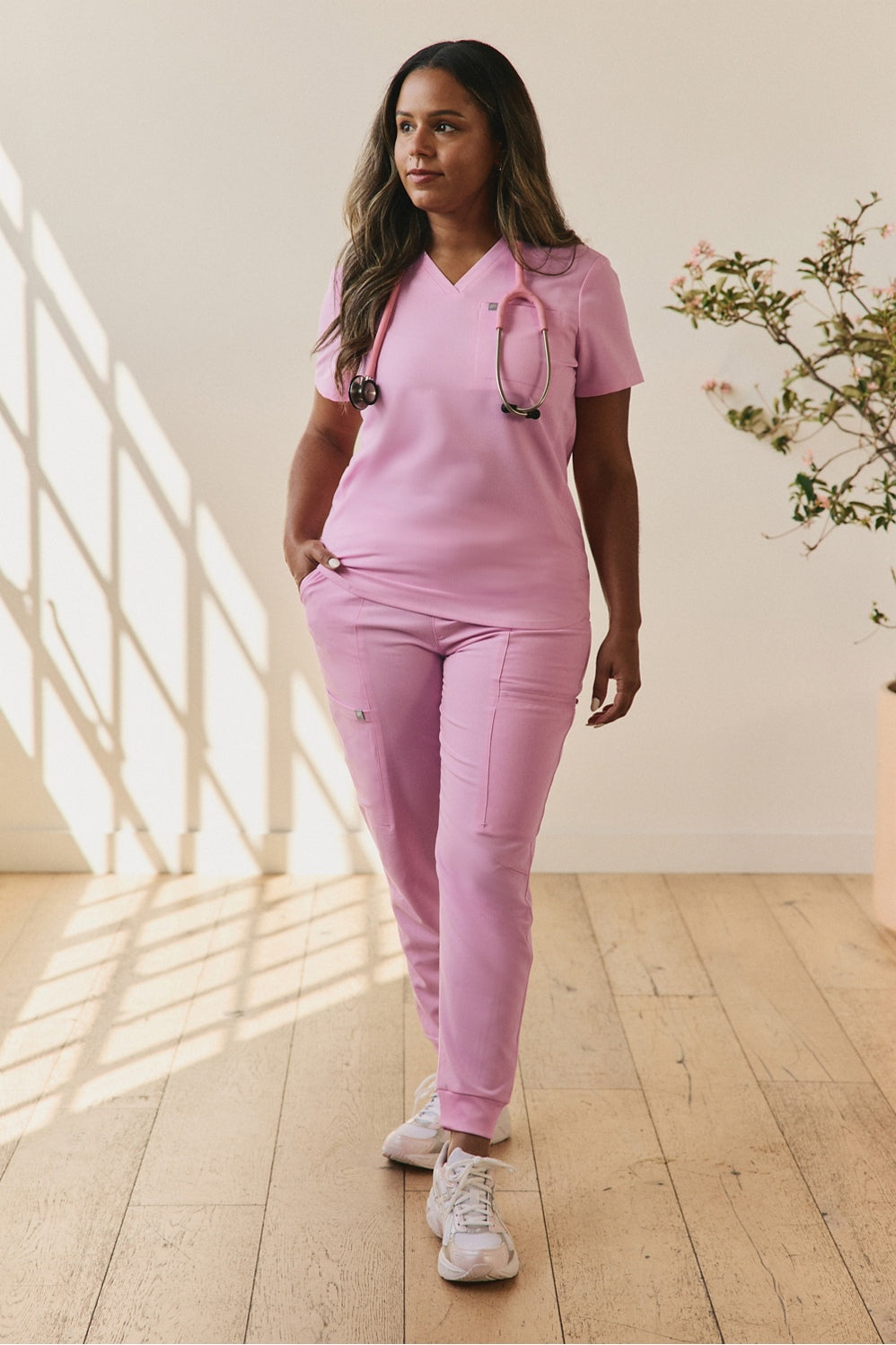 Made with superior stretch, durable water repellent tech, and a super-soft feel, this fabric is made to last & keep you comfortable through any shift. High-quality performance provides support and dependability, all while delivering a flattering finish.