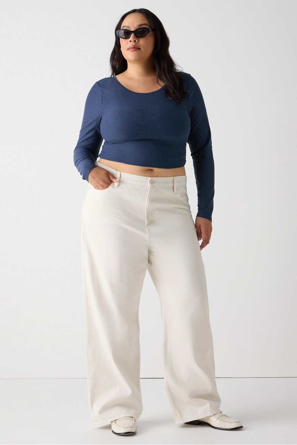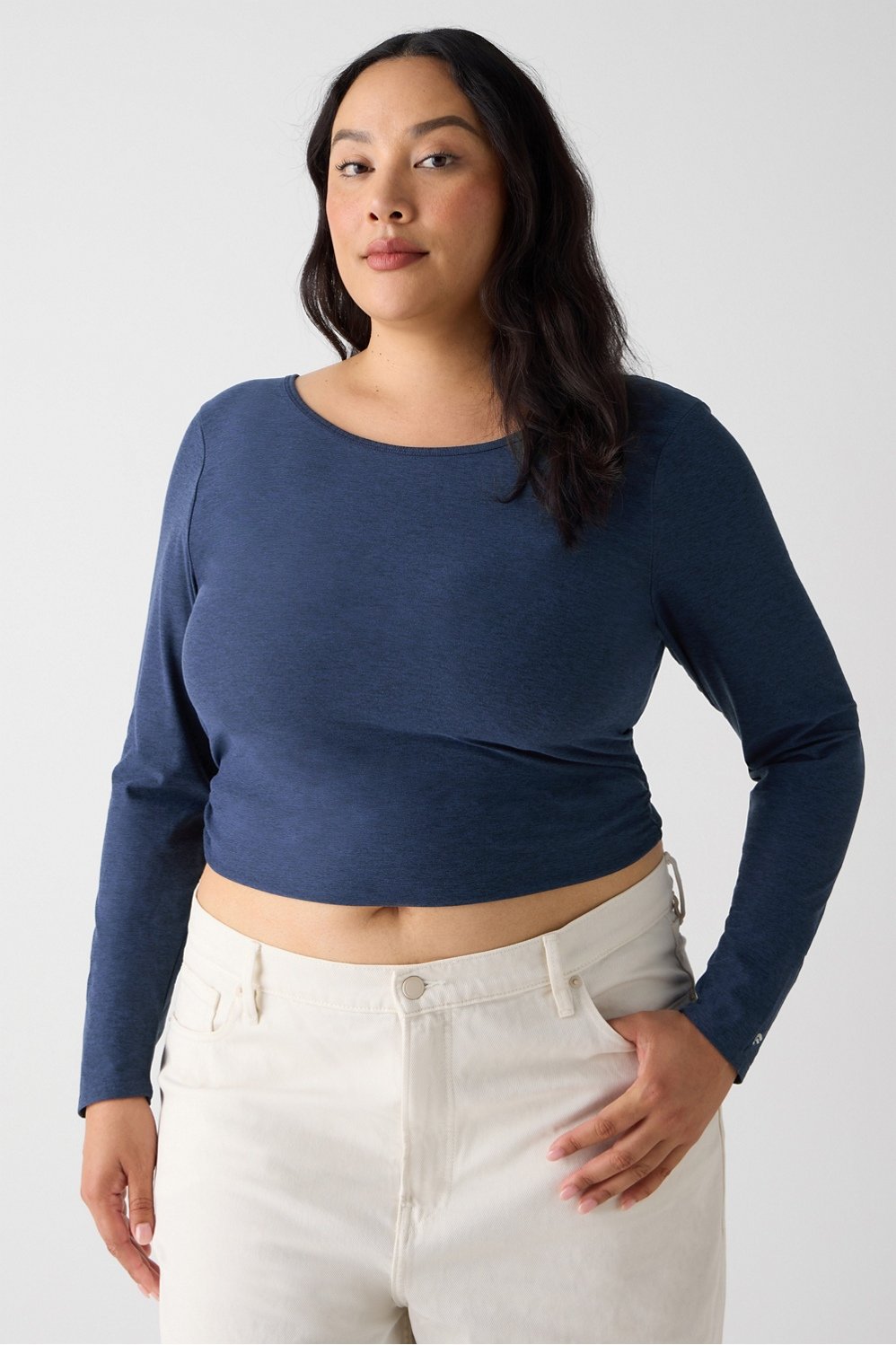 Ultra light and ultra soft in our Whisper fabric. A chic reversible neckline and cropped fit give it that flirty edge, while form-fitting stretch and moisture-wicking comfort keep you ready for lounging or out on the move.