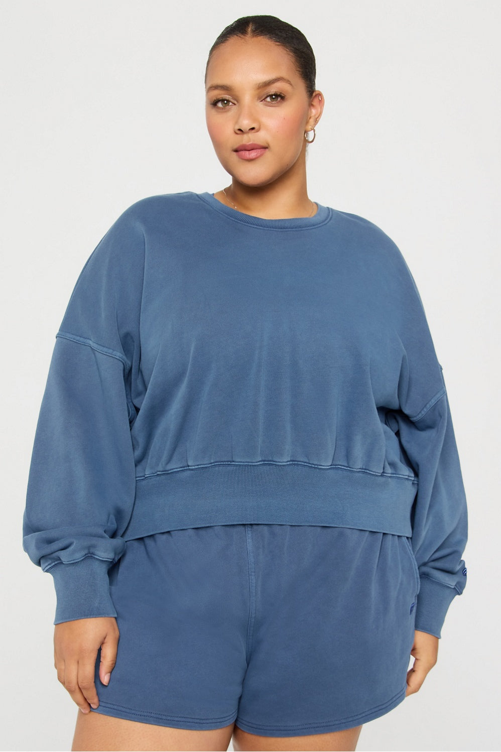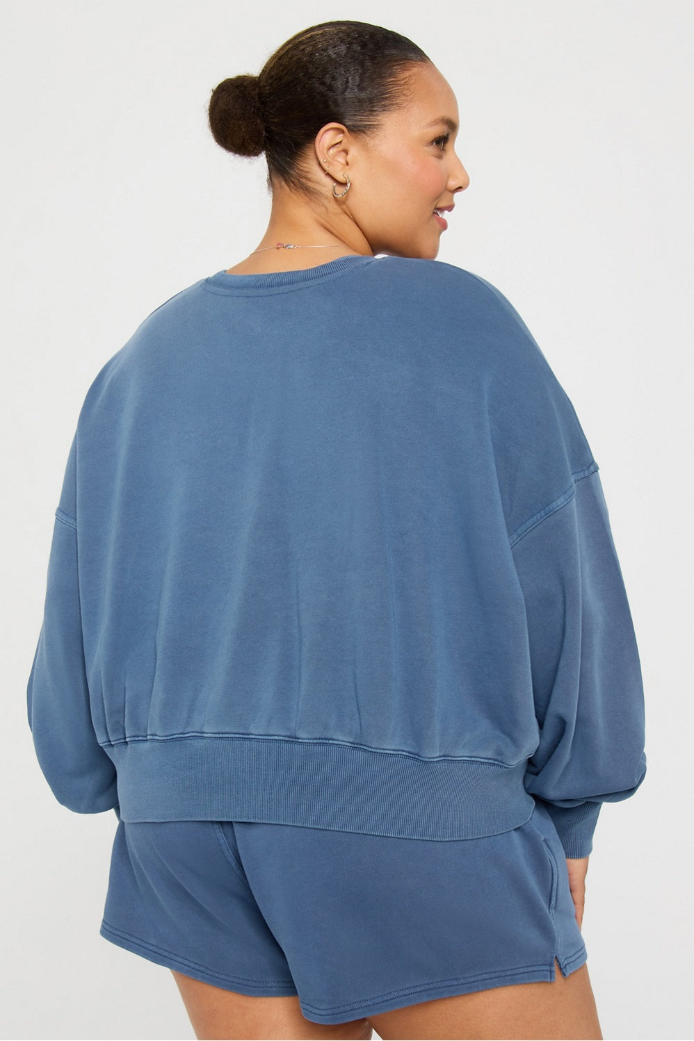 Stay snug, stay cute. This throw-on-and-go style features a drop shoulder and is made from year-round terry that's perfect for day to night. With its soft, stretchy feel, it's the ultimate cozy piece you'll want to wear all the time. This garment was made with a special dye process to achieve its unique color. Therefore no two pieces are exactly the same. This color way fade over time, giving you a lived-in look you'll love. We recommend that you wash with like colors and exercise caution around light-colored fabrics.