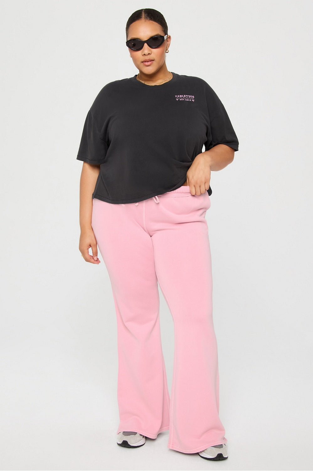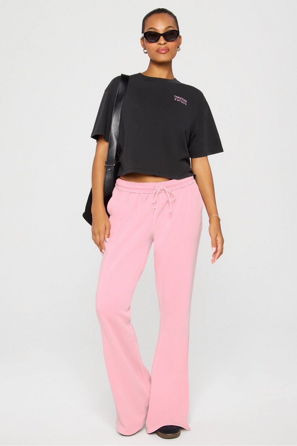 Your new everyday must-have. These flared pants, made from soft Year Round Terry, feature a roll-over waistband and hidden drawcord for all-day comfort and a laidback vibe. This garment was made with a special dye process to achieve its unique color. Therefore no two pieces are exactly the same. This color way fade over time, giving you a lived-in look you'll love. We recommend that you wash with like colors and exercise caution around light-colored fabrics.