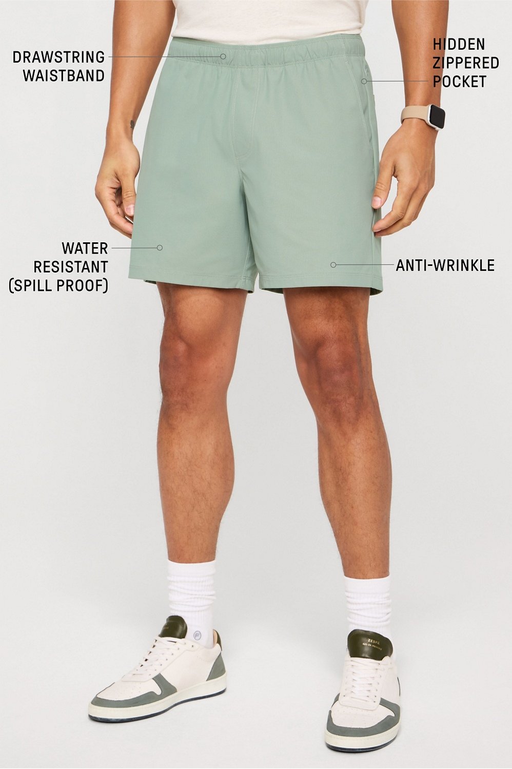 A polished twist on a laid-back classic. Our wrinkle-resistant fabric meets an elasticated waistband and easy fit for ultimate comfort. Side and back pockets keep your things close while an 6” inseam hits right above the knee.