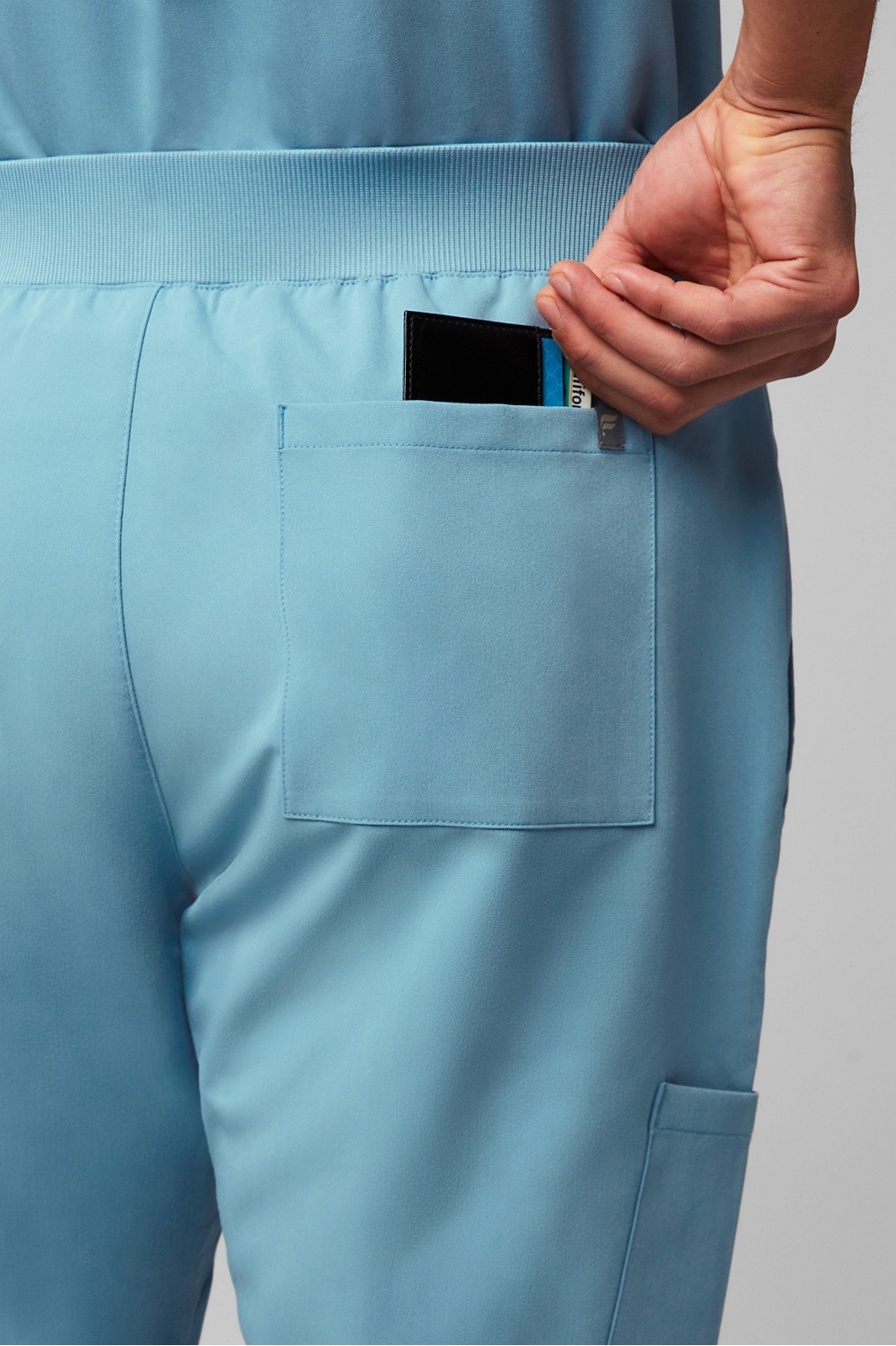 This modernized scrub pant features essential pockets for all your storage needs. Our Signature Stay-Put Waistband allows for a full range of motion, thanks to its elastic ribbing + adjustable drawcord security combo.