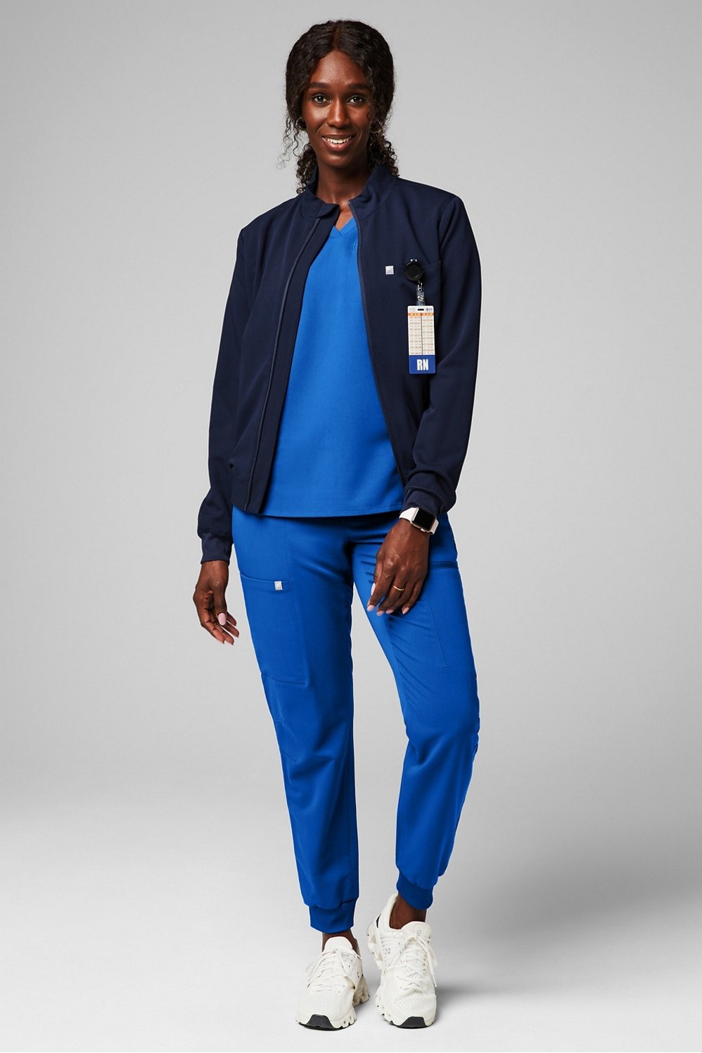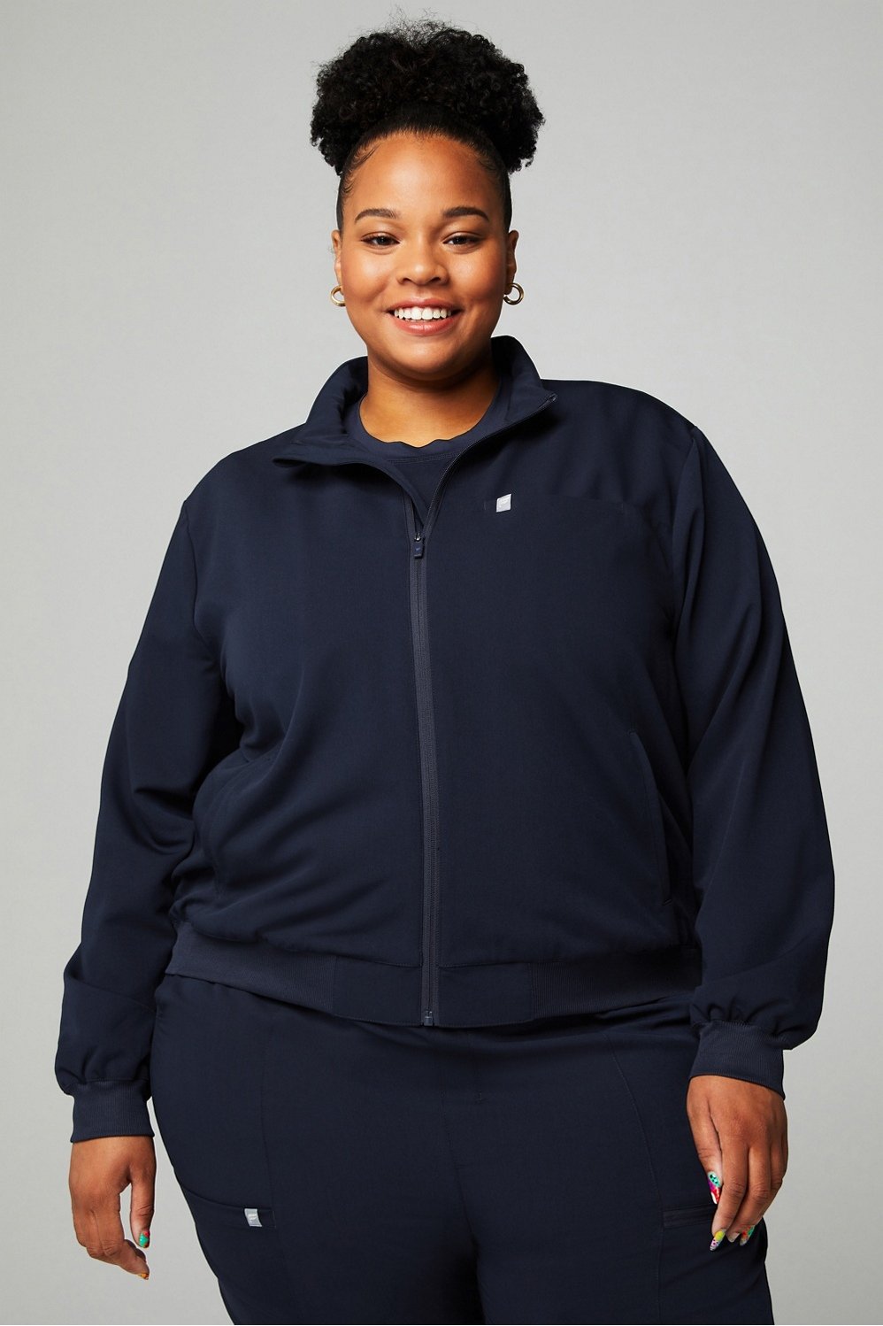 Add an extra layer with this contemporary scrub jacket that prioritizes both comfort and style, without compromising on storage.