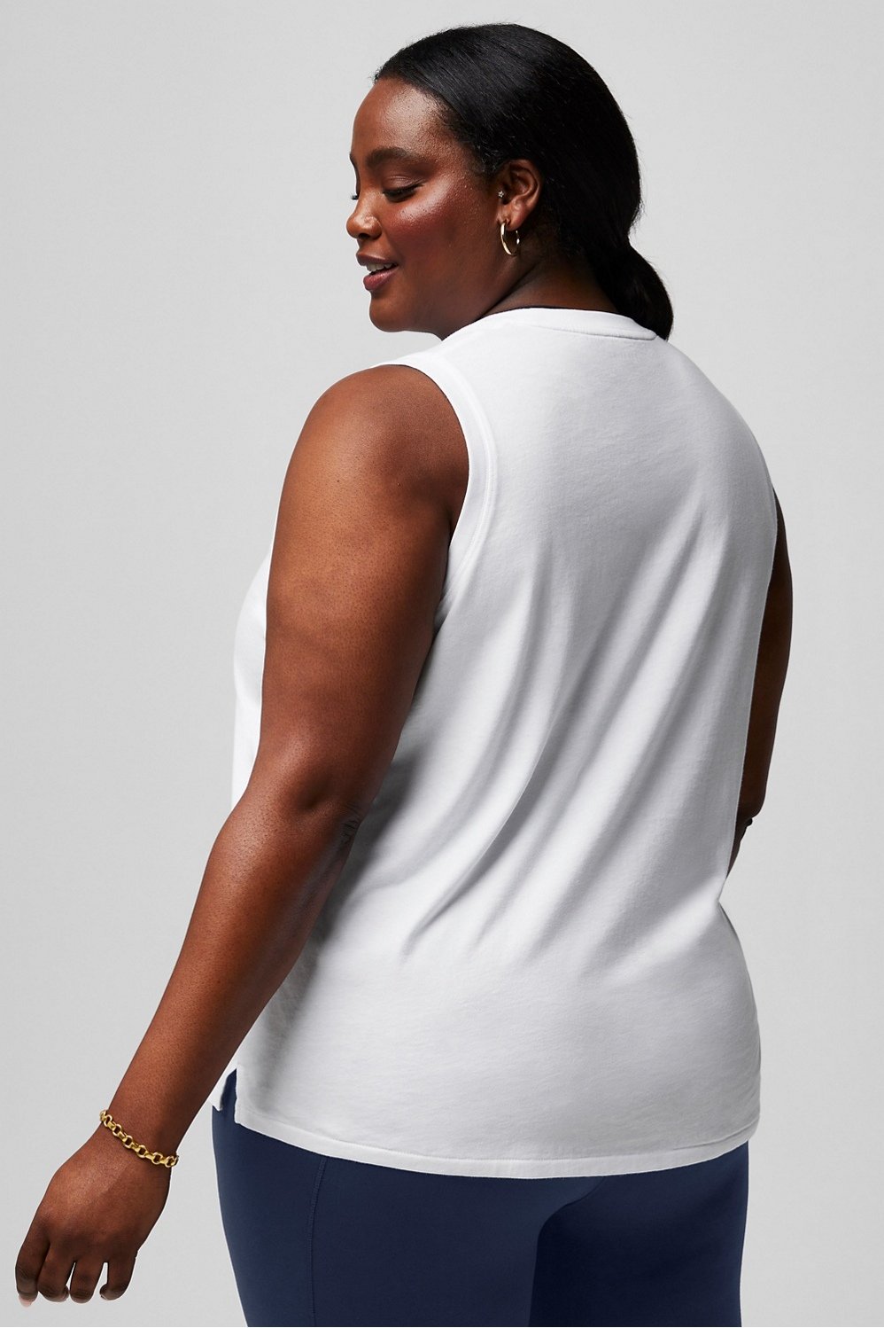 The classic tank, but softer. Lounge, lunge, or hit the town in this sleeveless staple. It’s not too slim, not too wide, and just the right amount of soft.