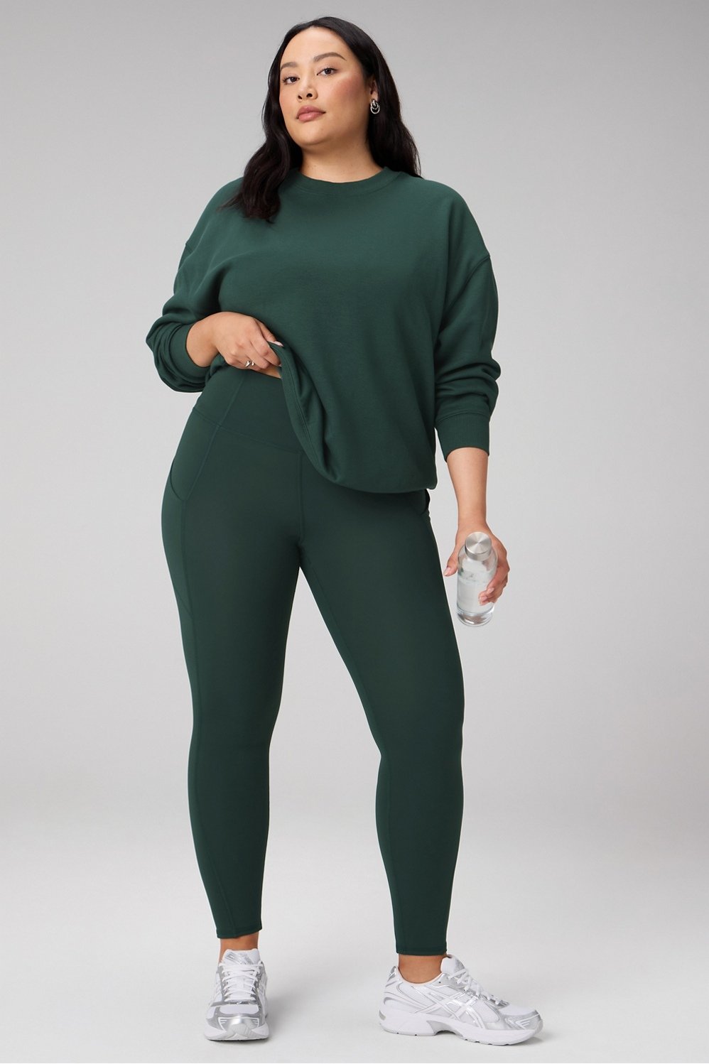 Made with 67% recycled materials, this soft, cozy fabric has a heavier structure and warm brushed interior perfect for cooler temperatures.