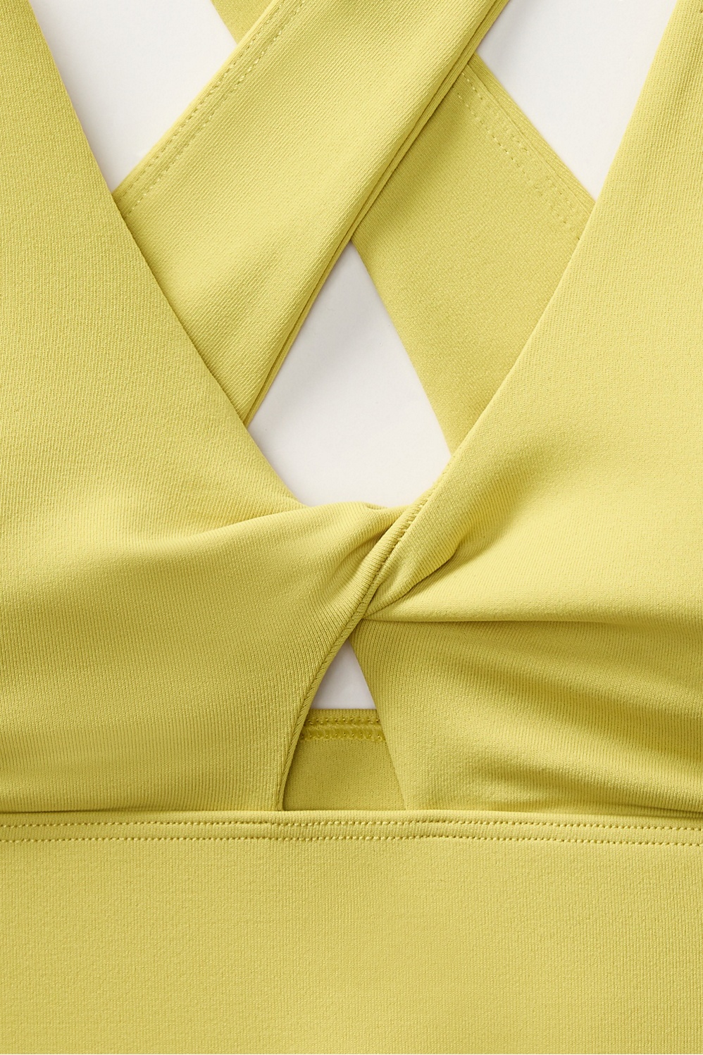 Perfect for spin, studio, and hikes, our most flattering bra offers medium-impact support without the squeeze. Designed to solve side spillage, while gently lifting, shaping, and holding you in. Features a ventilated keyhole and crisscrossing straps.