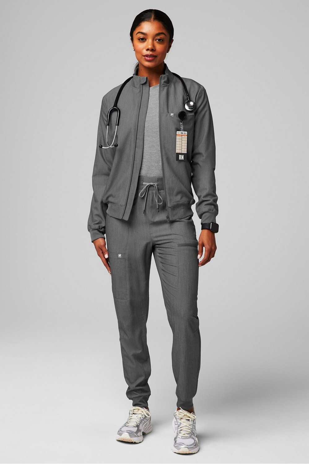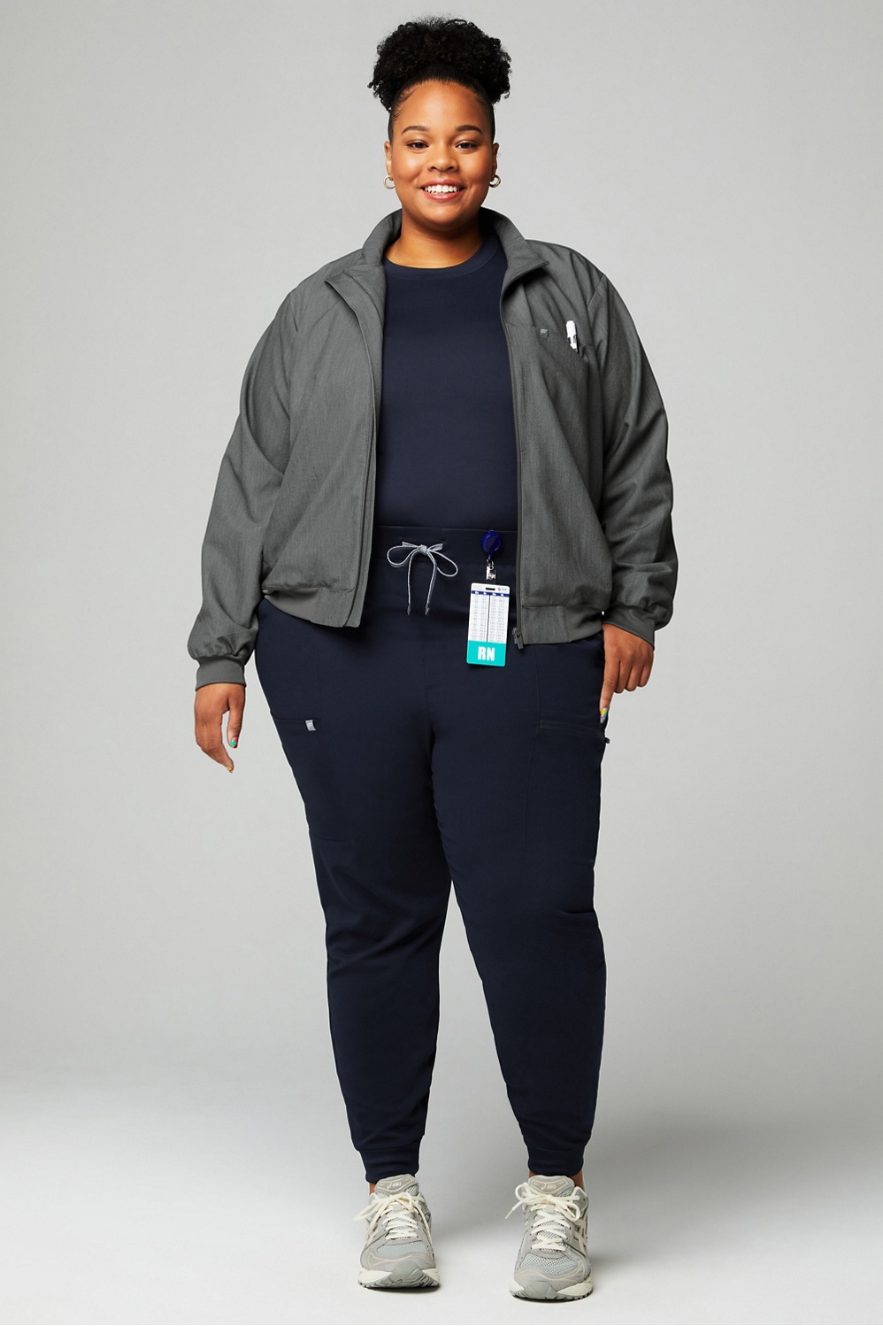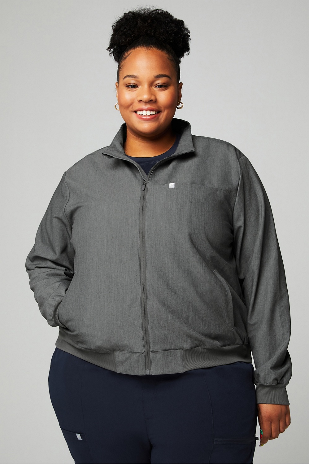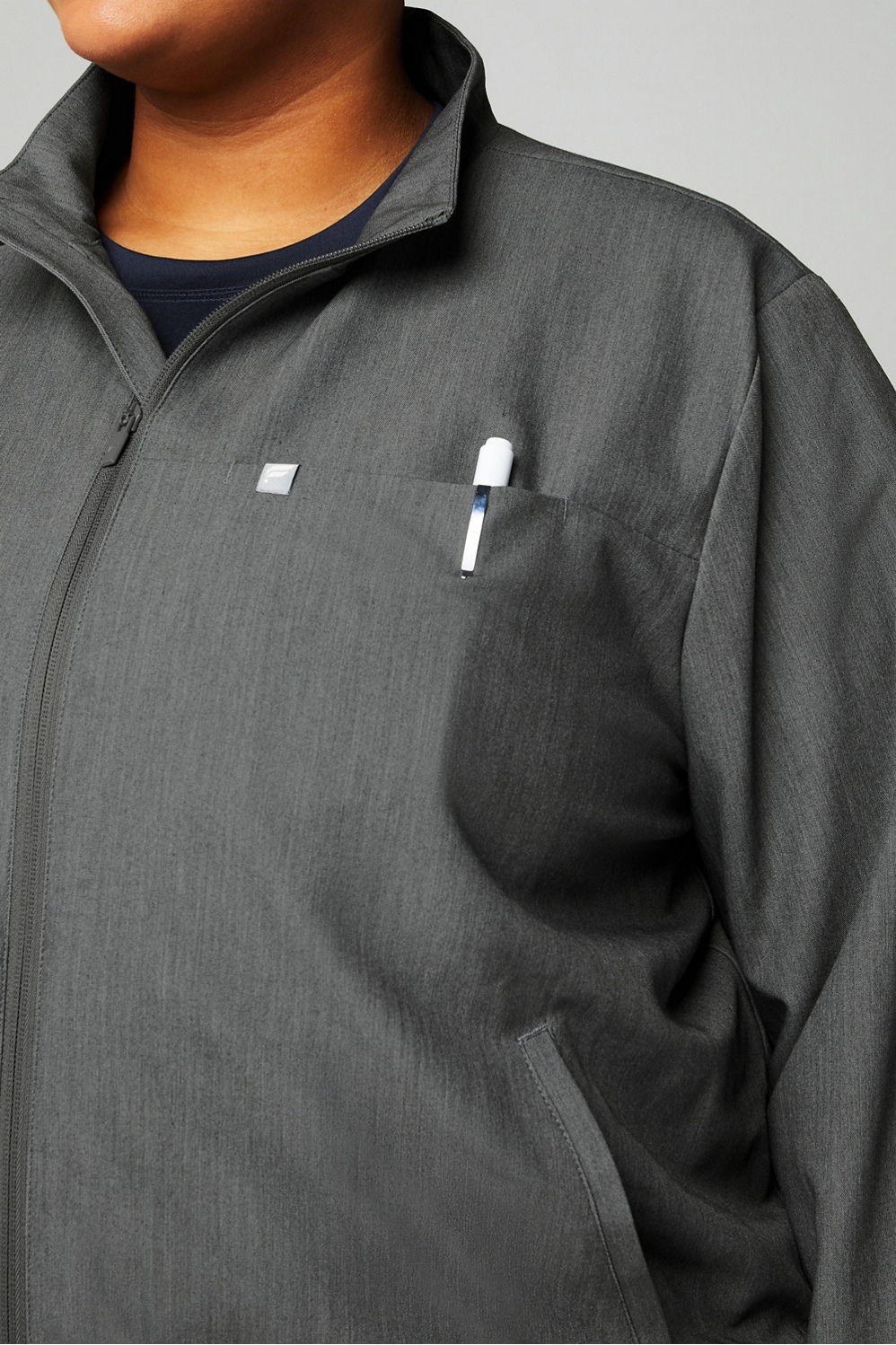 Add an extra layer with this contemporary scrub jacket that prioritizes both comfort and style, without compromising on storage. Fabric infused with anti-microbial tech.