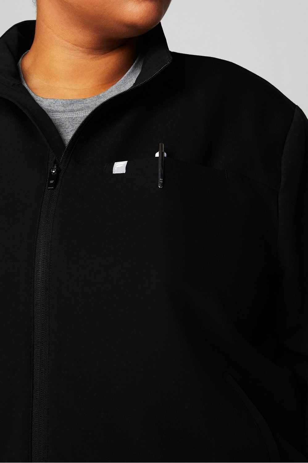Add an extra layer with this contemporary scrub jacket that prioritizes both comfort and style, without compromising on storage.