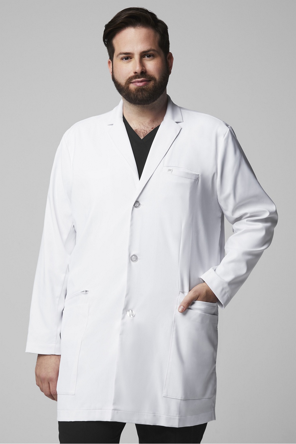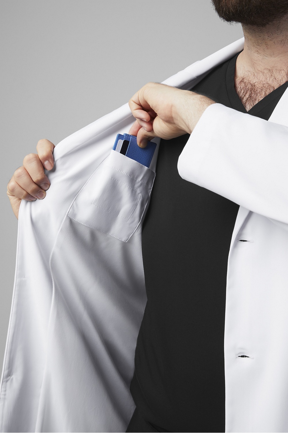 Tailored to perfection. This lab coat offers a sleek silhouette in a longer 37” length, with pockets for every essential and breathable FormTech fabric that moves with you.