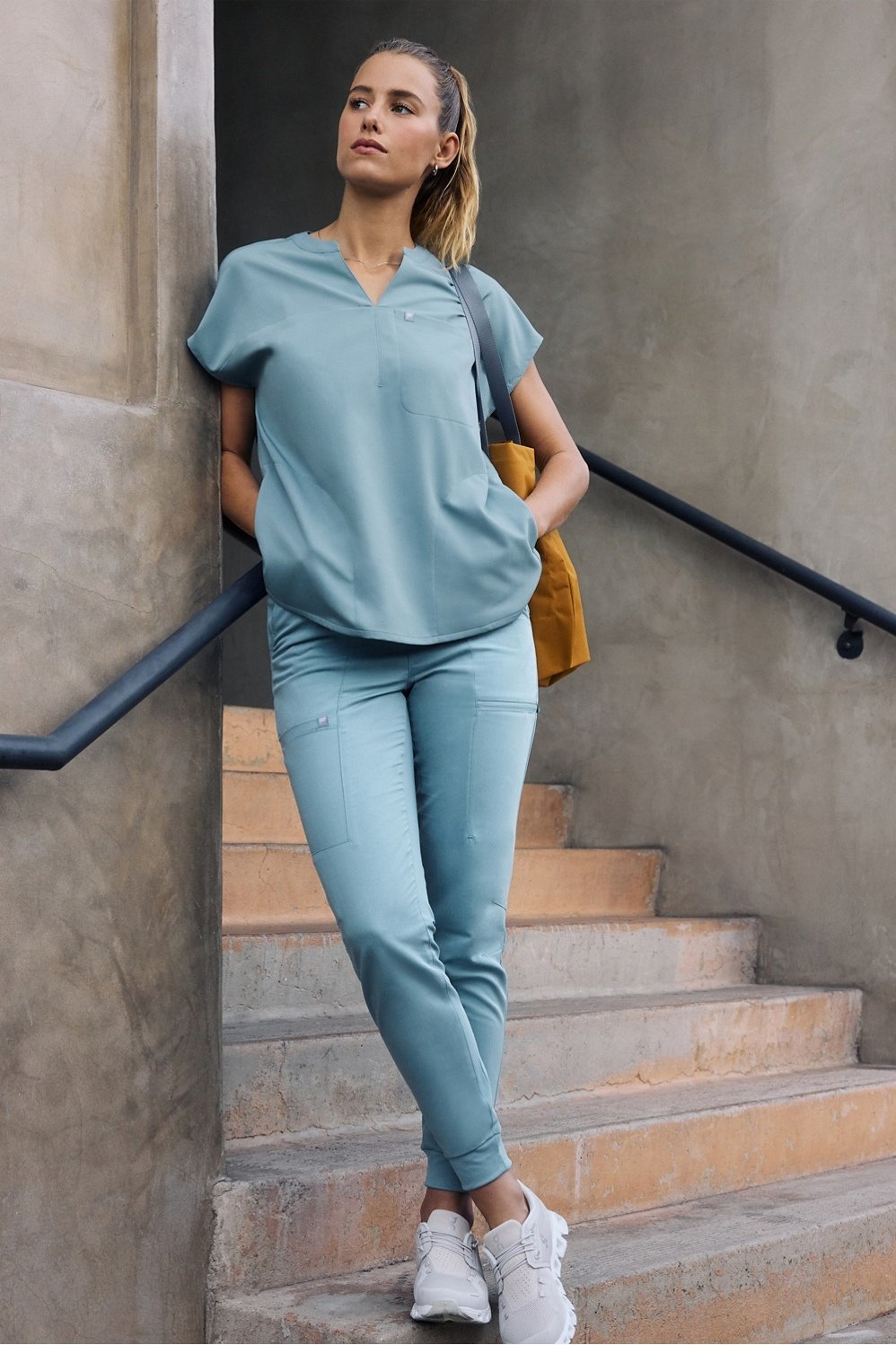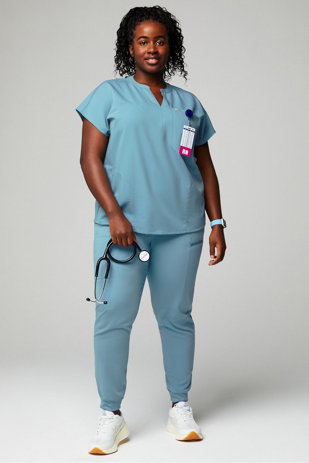 Made with superior stretch, durable water repellent tech, and a super-soft feel, this fabric is made to last & keep you comfortable through any shift. High-quality performance provides support and dependability, all while delivering a flattering finish.
