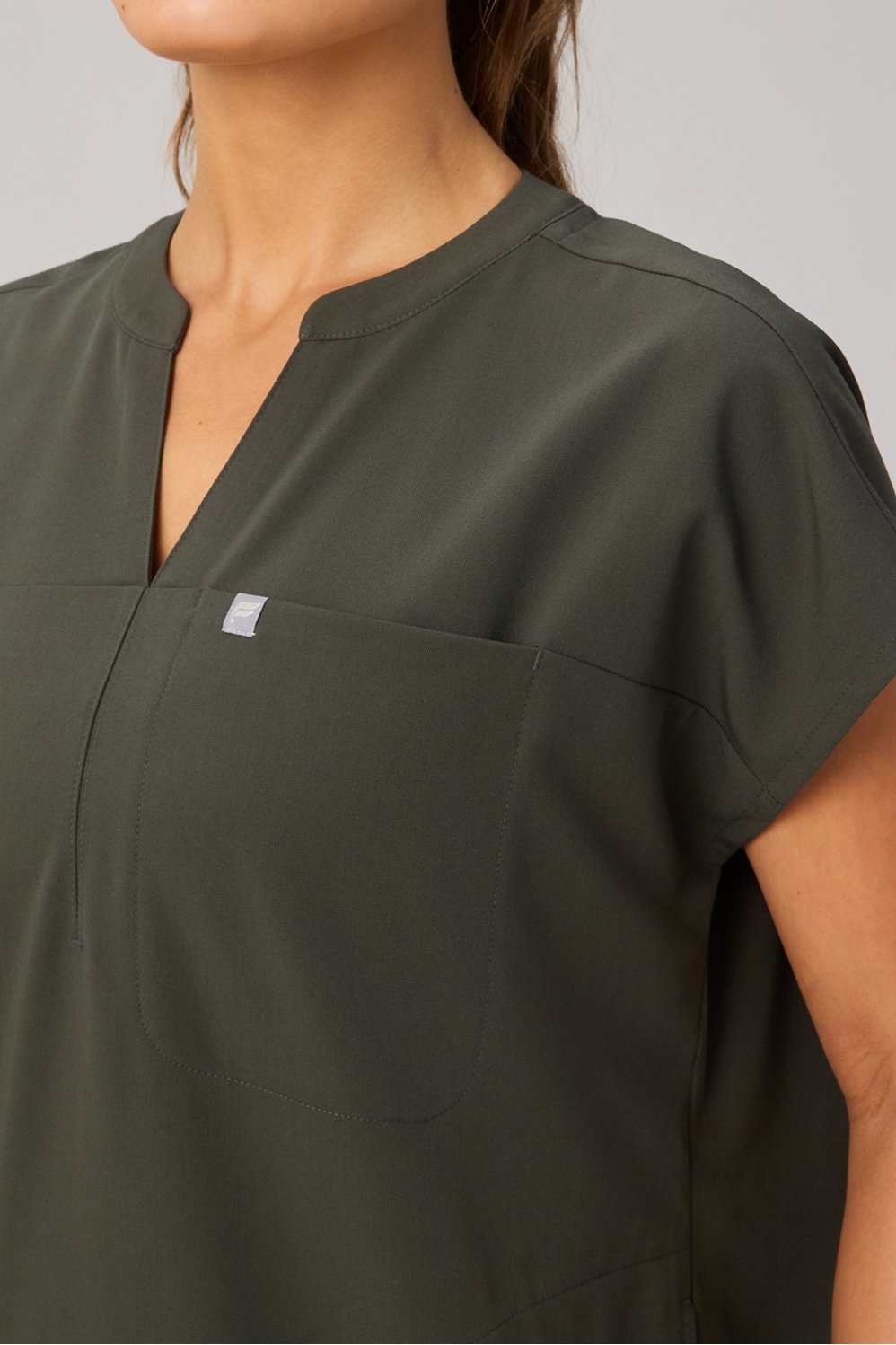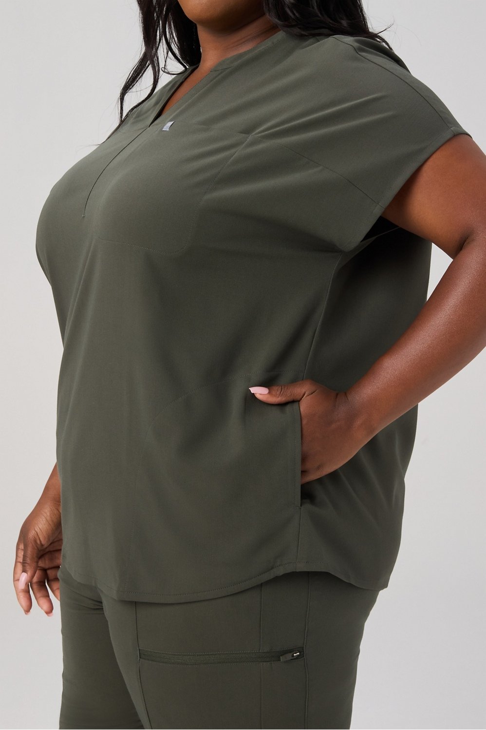 Made with superior stretch, durable water repellent tech, and a super-soft feel, this fabric is made to last & keep you comfortable through any shift. High-quality performance provides support and dependability, all while delivering a flattering finish.