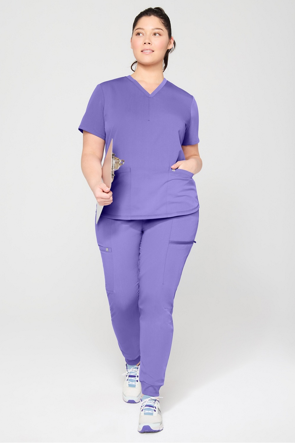 Made with superior stretch, durable water repellent tech, and a super-soft feel, this fabric is made to last & keep you comfortable through any shift. High-quality performance provides support and dependability, all while delivering a flattering finish.