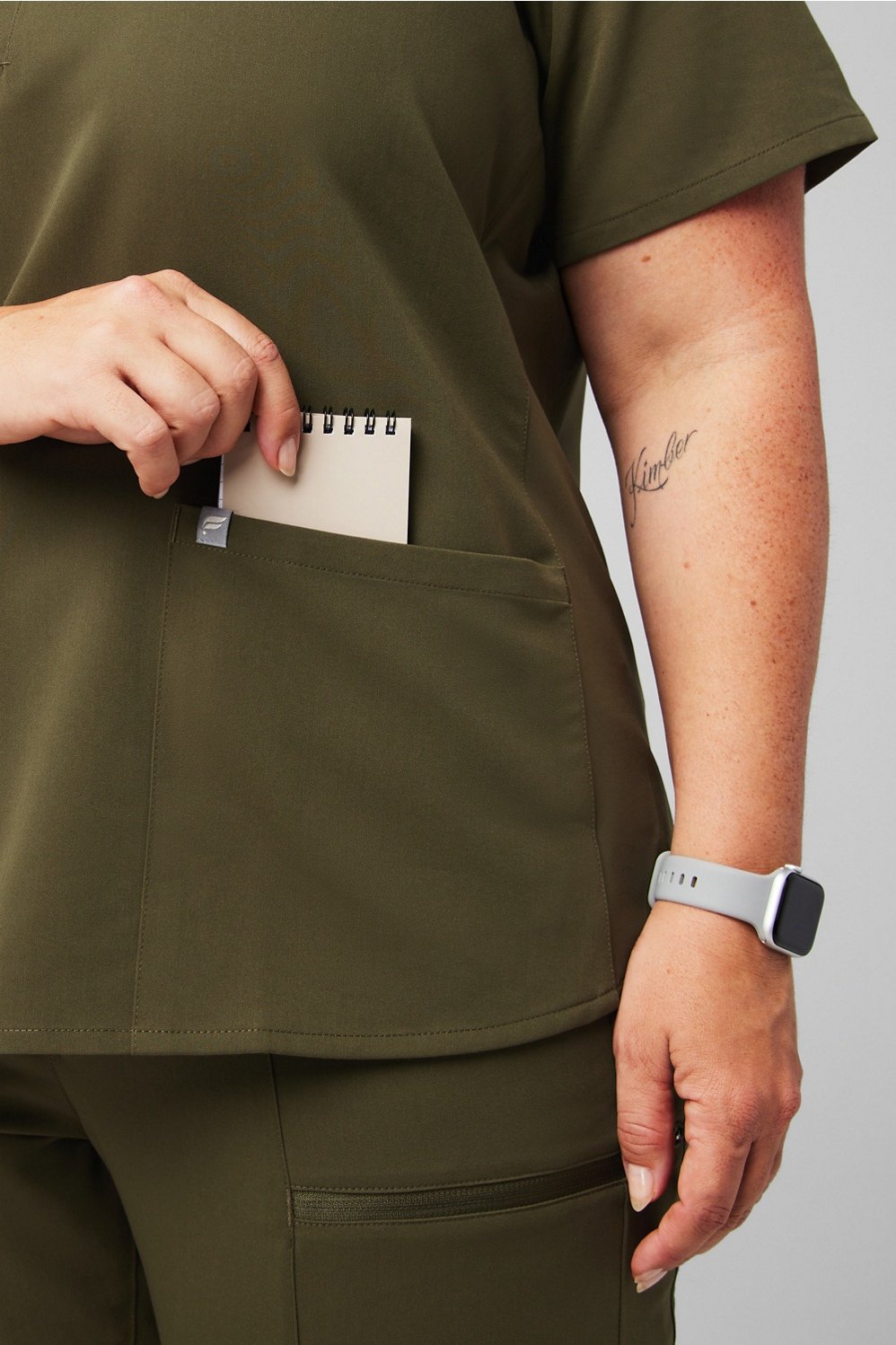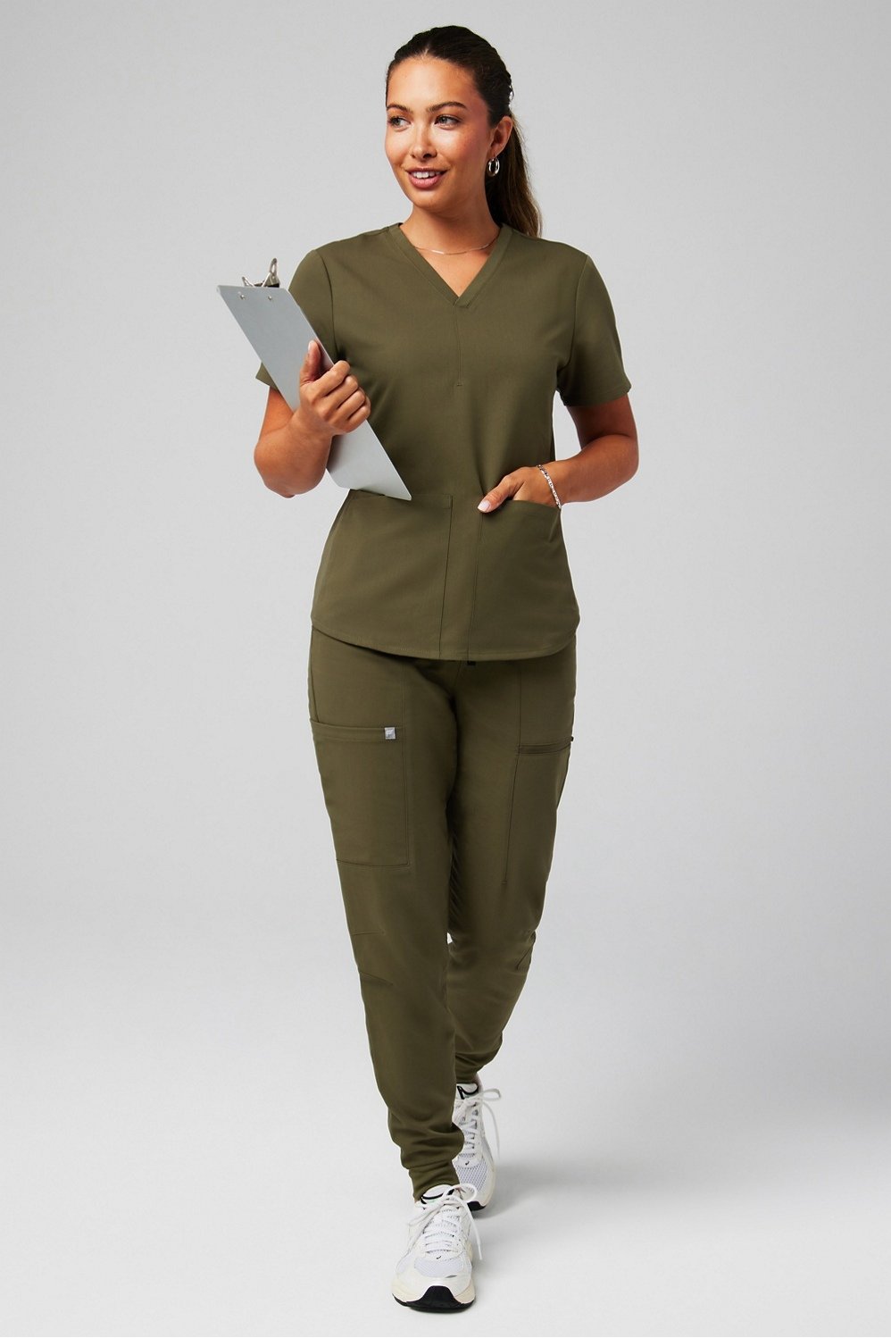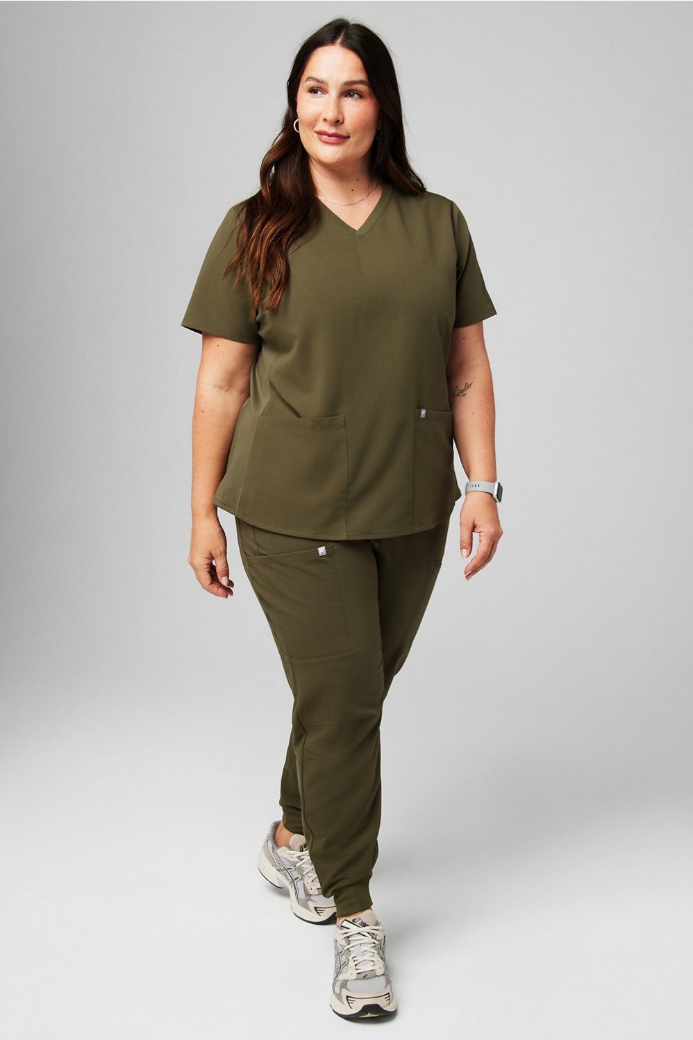 Made with superior stretch, durable water repellent tech, and a super-soft feel, this fabric is made to last & keep you comfortable through any shift. High-quality performance provides support and dependability, all while delivering a flattering finish.