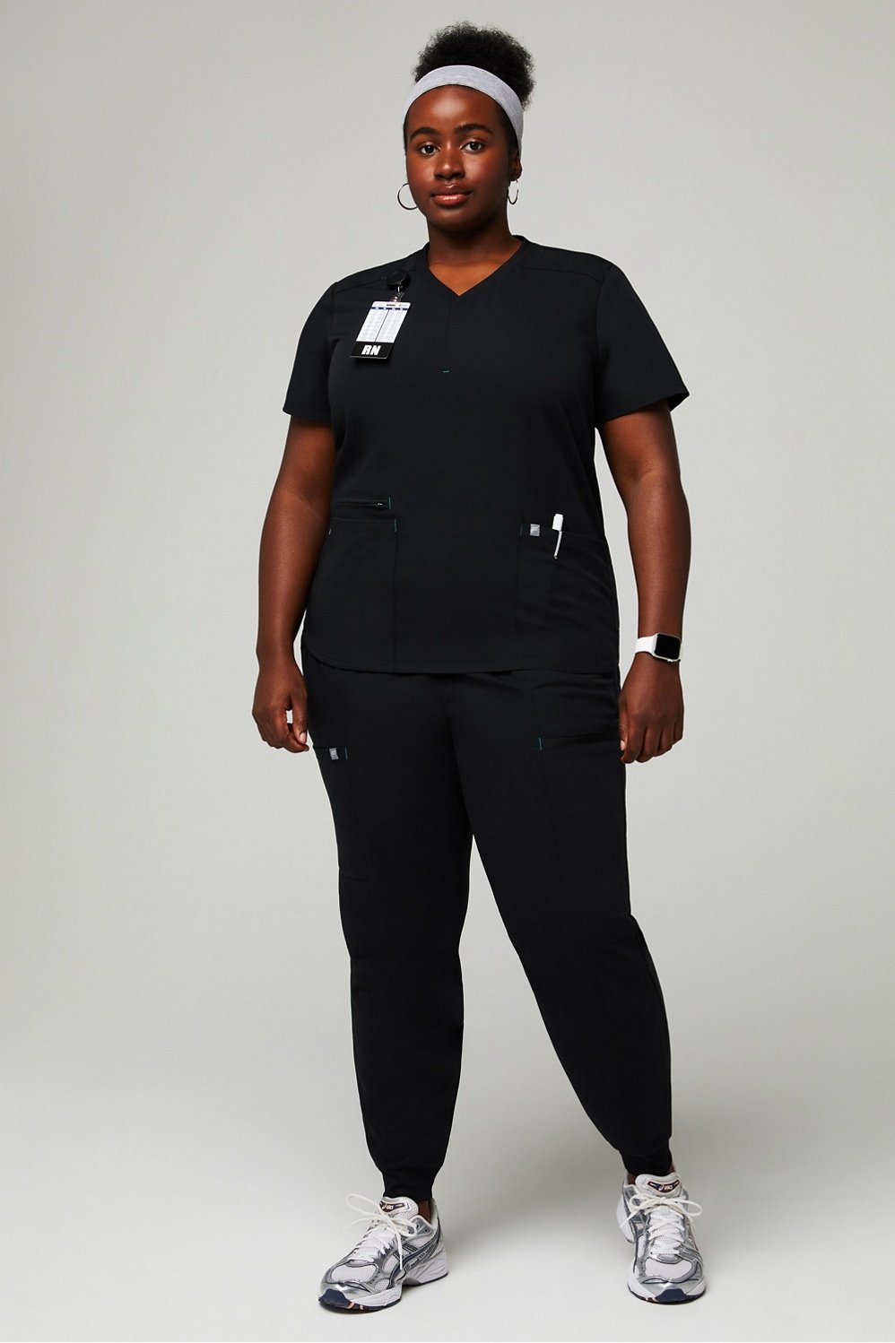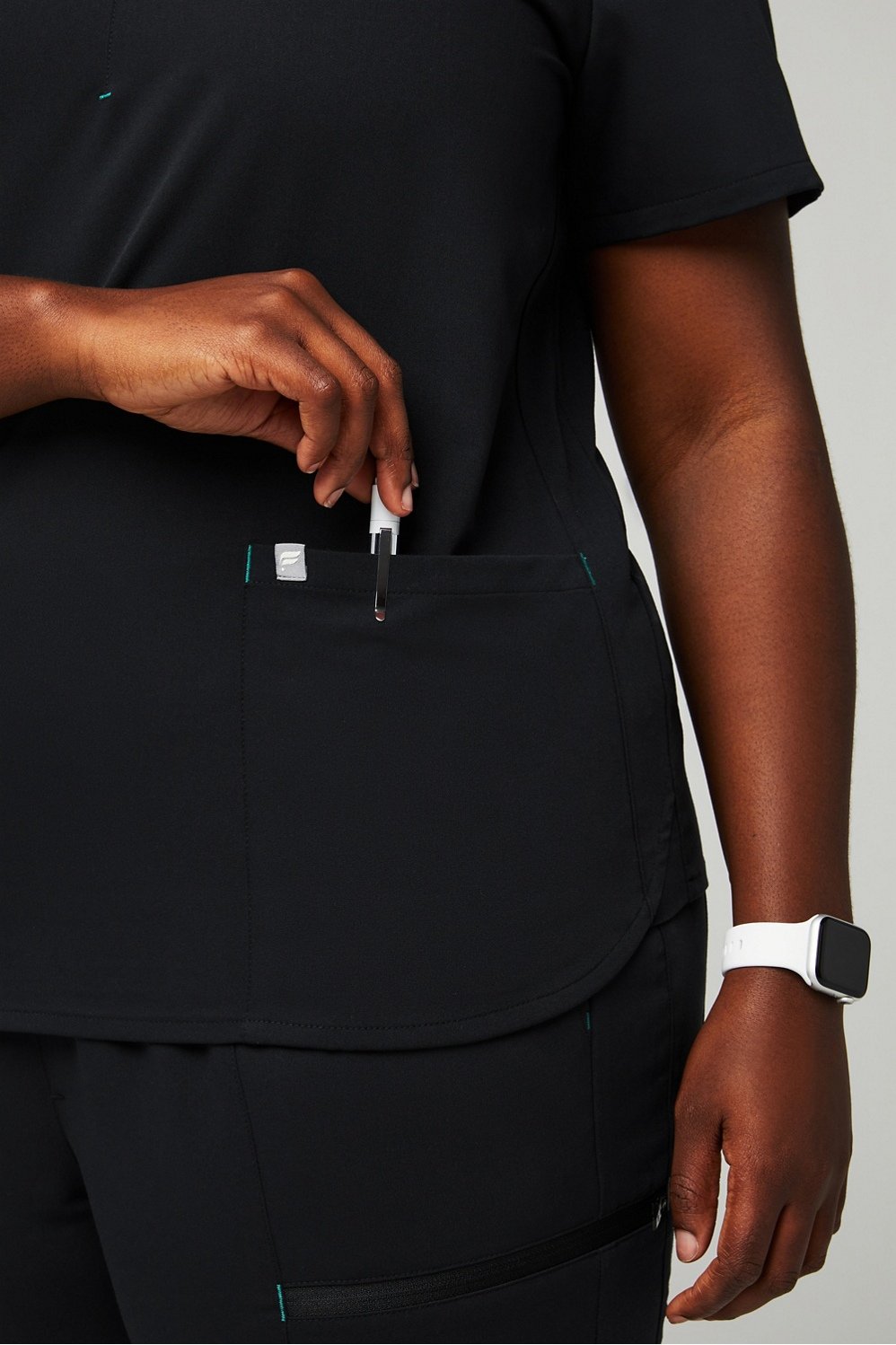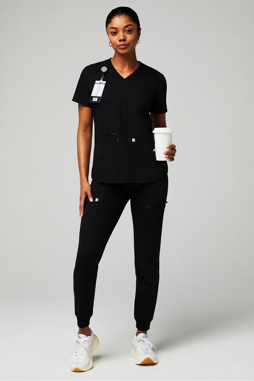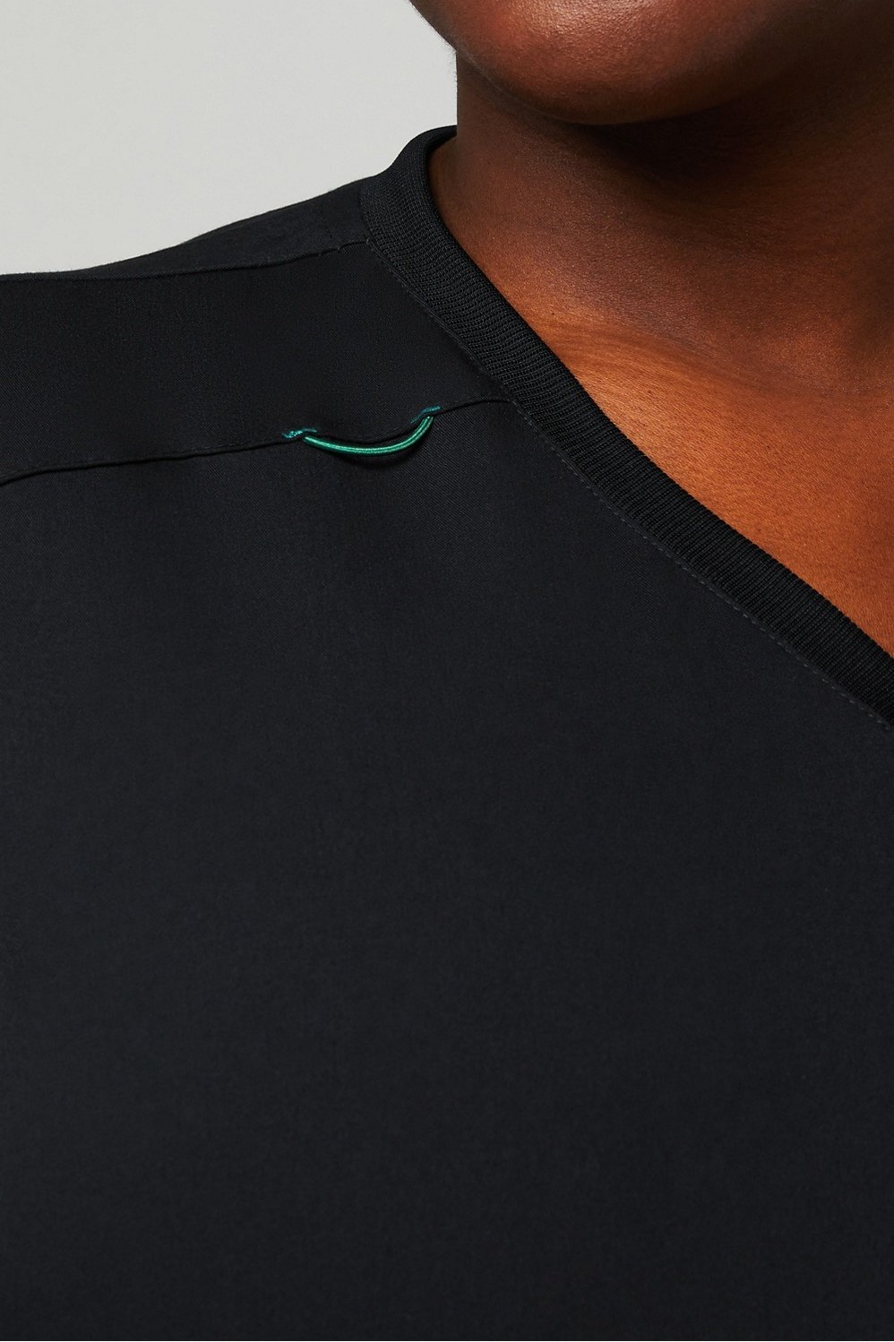 A functional update on our classic silhouette. Your new go-to scrub top has a semi-slim fit with four pockets and a bungee badge clip. Perfectly designed for 12-hour shifts and beyond.