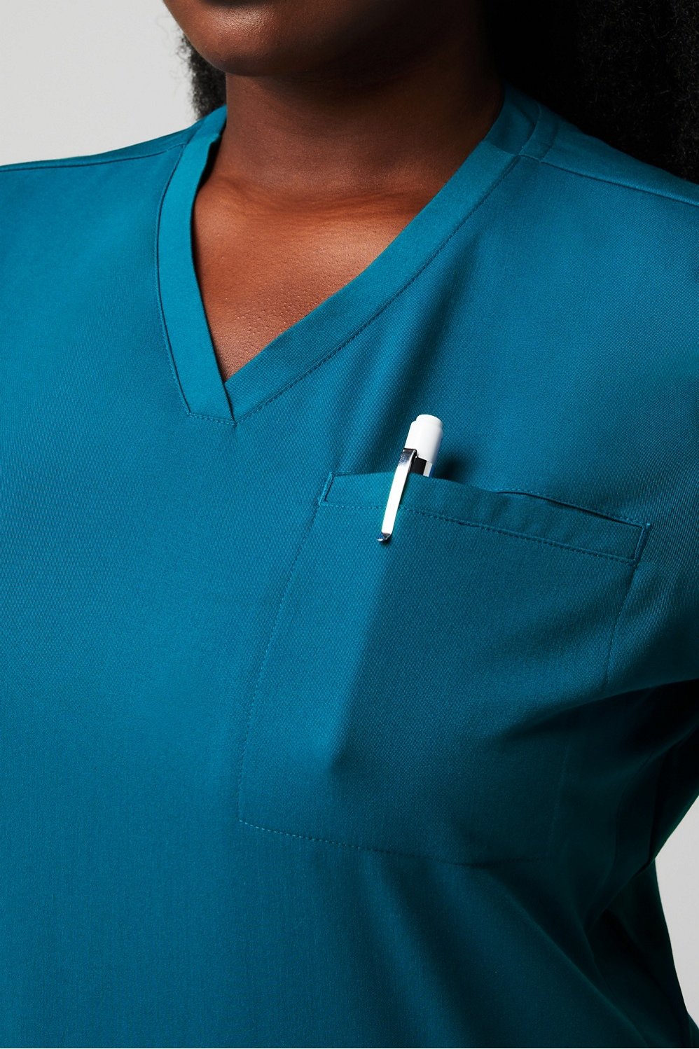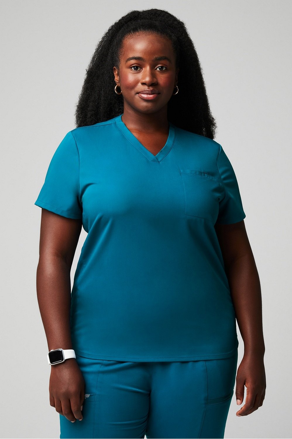 Made with superior stretch, durable water repellent tech, and a super-soft feel, this fabric is made to last & keep you comfortable through any shift. High-quality performance provides support and dependability, all while delivering a flattering finish.