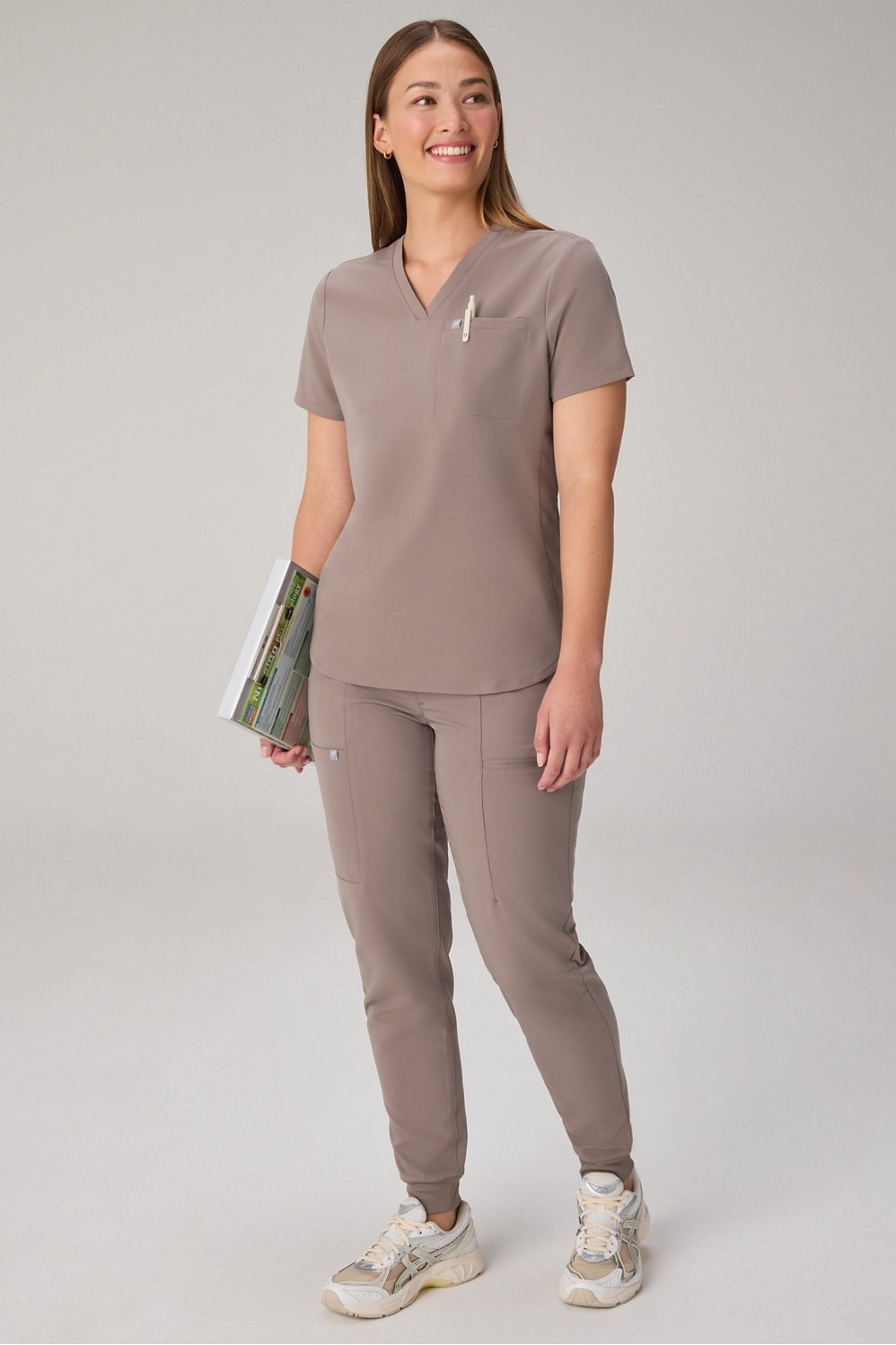 Made with superior stretch, durable water repellent tech, and a super-soft feel, this fabric is made to last & keep you comfortable through any shift. High-quality performance provides support and dependability, all while delivering a flattering finish.