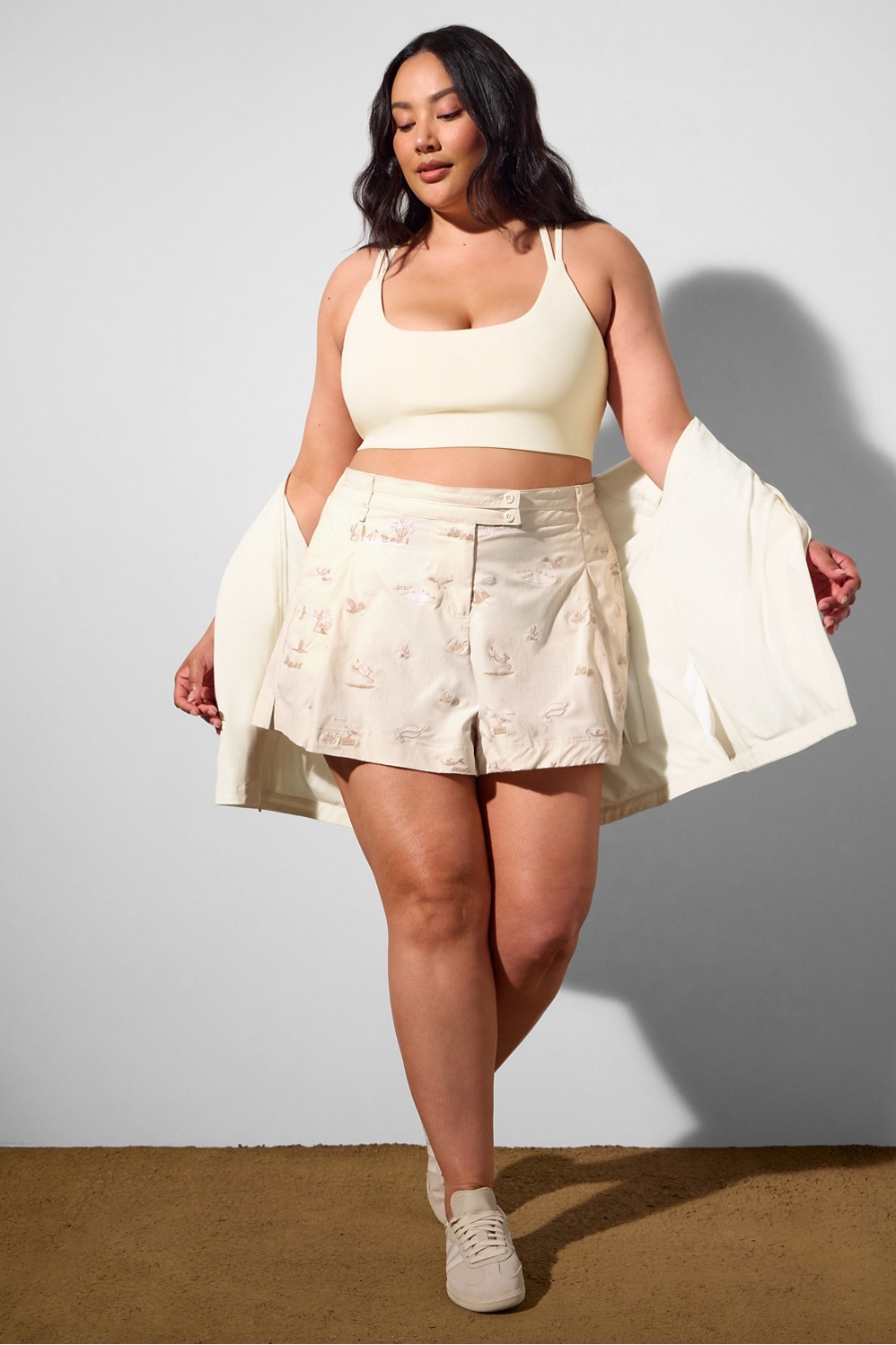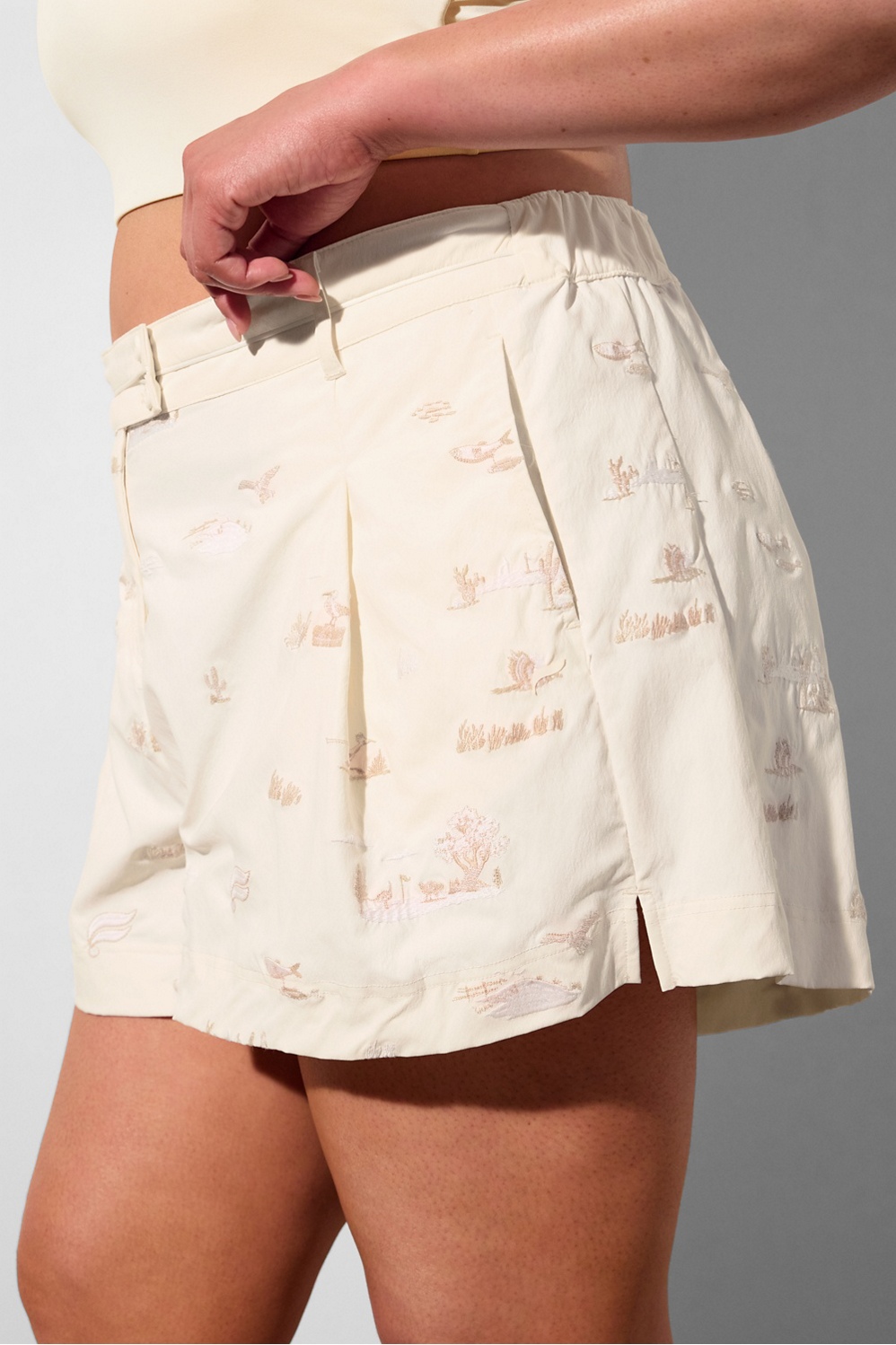 Malbon Golf co-creators Stephen & Erica Malbon bring their signature vision to an ultra-limited collection, exclusively for Fabletics. From casual hangouts to elevated chic moments, these Pleated Shorts are your new fun & flirty go-to. With a flattering mid-rise, buttoned waistband, contrast side panels, front fly closure, and wide-leg fit, this short delivers effortless style. Finished with signature embroidered animals throughout, inspired by the coastal, desert, and pine regions.