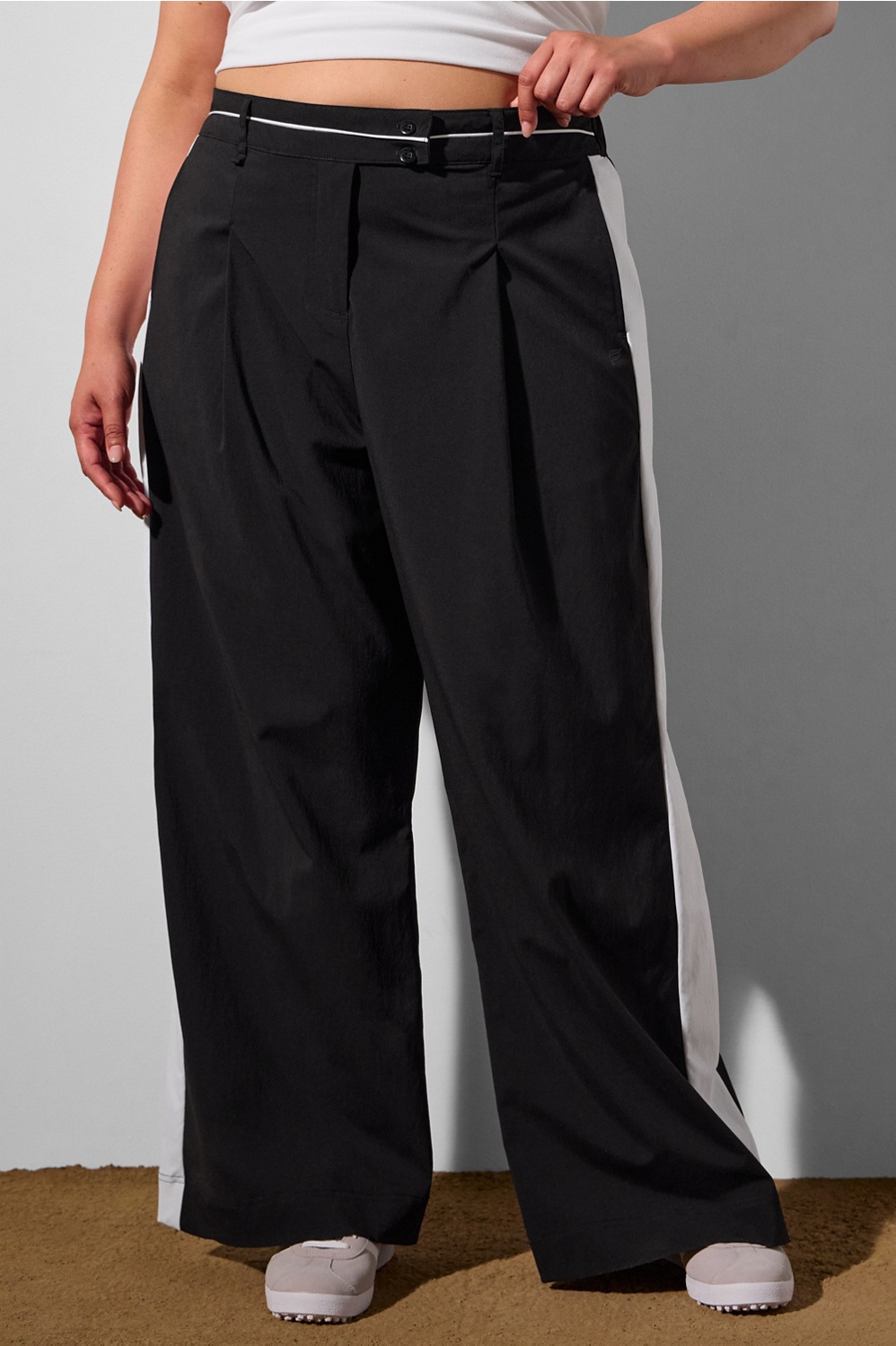Malbon Golf co-creators Stephen & Erica Malbon bring their signature vision to an ultra-limited collection, exclusively for Fabletics. Take your look from 9-5 to happy hour with these elevated pants. Crafted from our woven medium-weight fabric, they feature a wide leg, mid-rise, front pleats, side panels, and a button waistband with zip closure. Plus, the stretch back ensures a perfect fit.