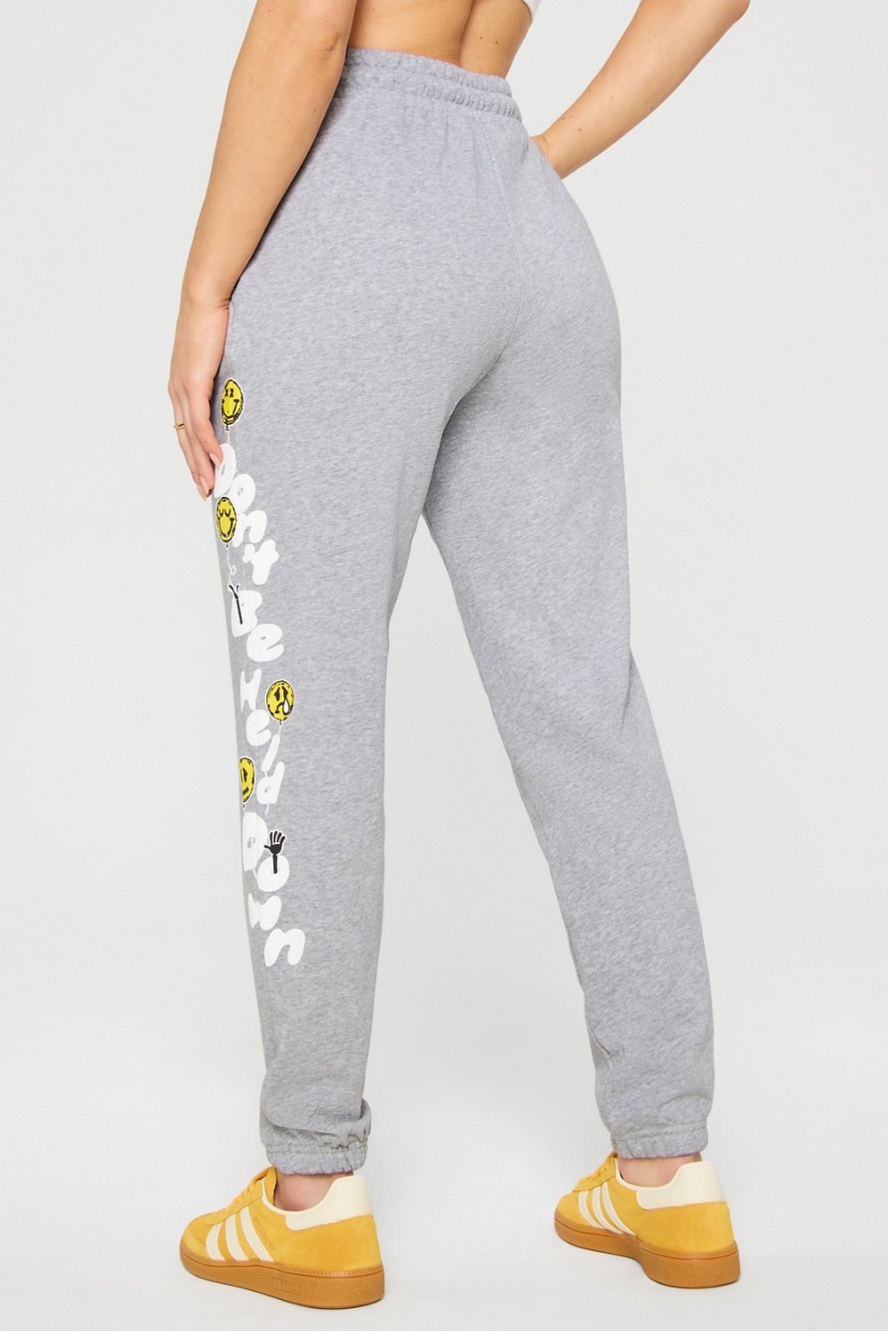 A limited-edition S.W. Smiley x Fabletics collection. This is your mood, your move, your moment. With exclusive S.W. Smiley x Fabletics graphics and our fan-favorite lightweight fleece, this limited-edition sweatpant is made to pass the vibe check every time.