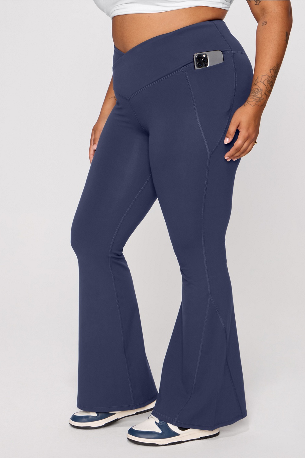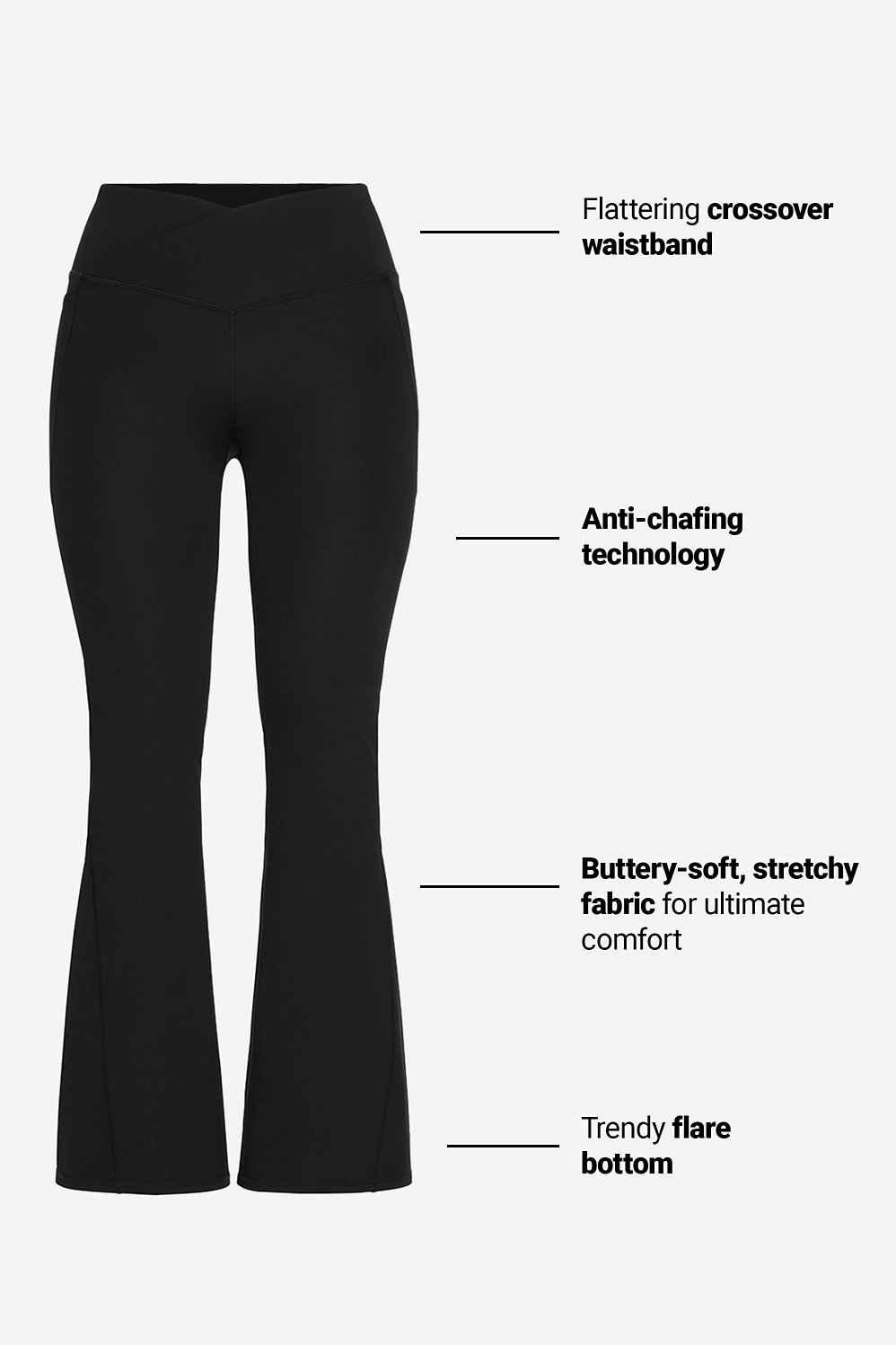 Turn heads in our standout flare leggings. Featuring a flattering crossover waistband and buttery-soft fabric for ultimate comfort, these leggings keep you looking on point from morning yoga to coffee runs.