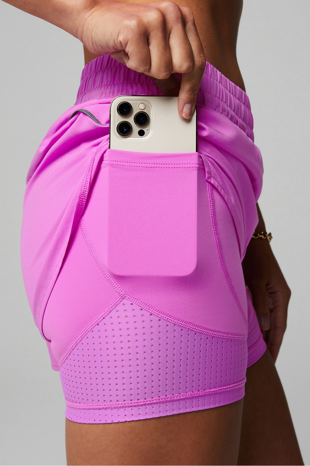 Running has never looked better. These high-tech run shorts fit and feel like a dream. They offer an adjustable waist, perforated inner short (no chafing!), pockets, and 360 reflective lining for nighttime workouts.