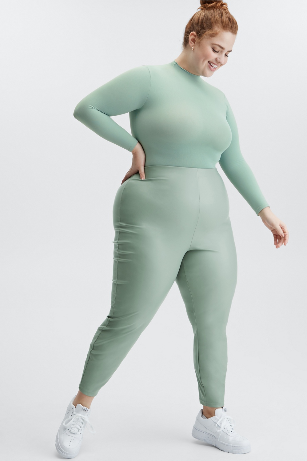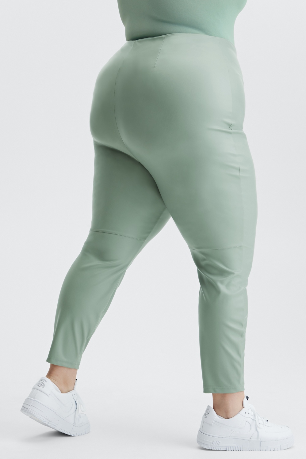 On trend and cute to boot, our vegan leather legging has a high rise and an invisible side zip for a figure-flattering fit.