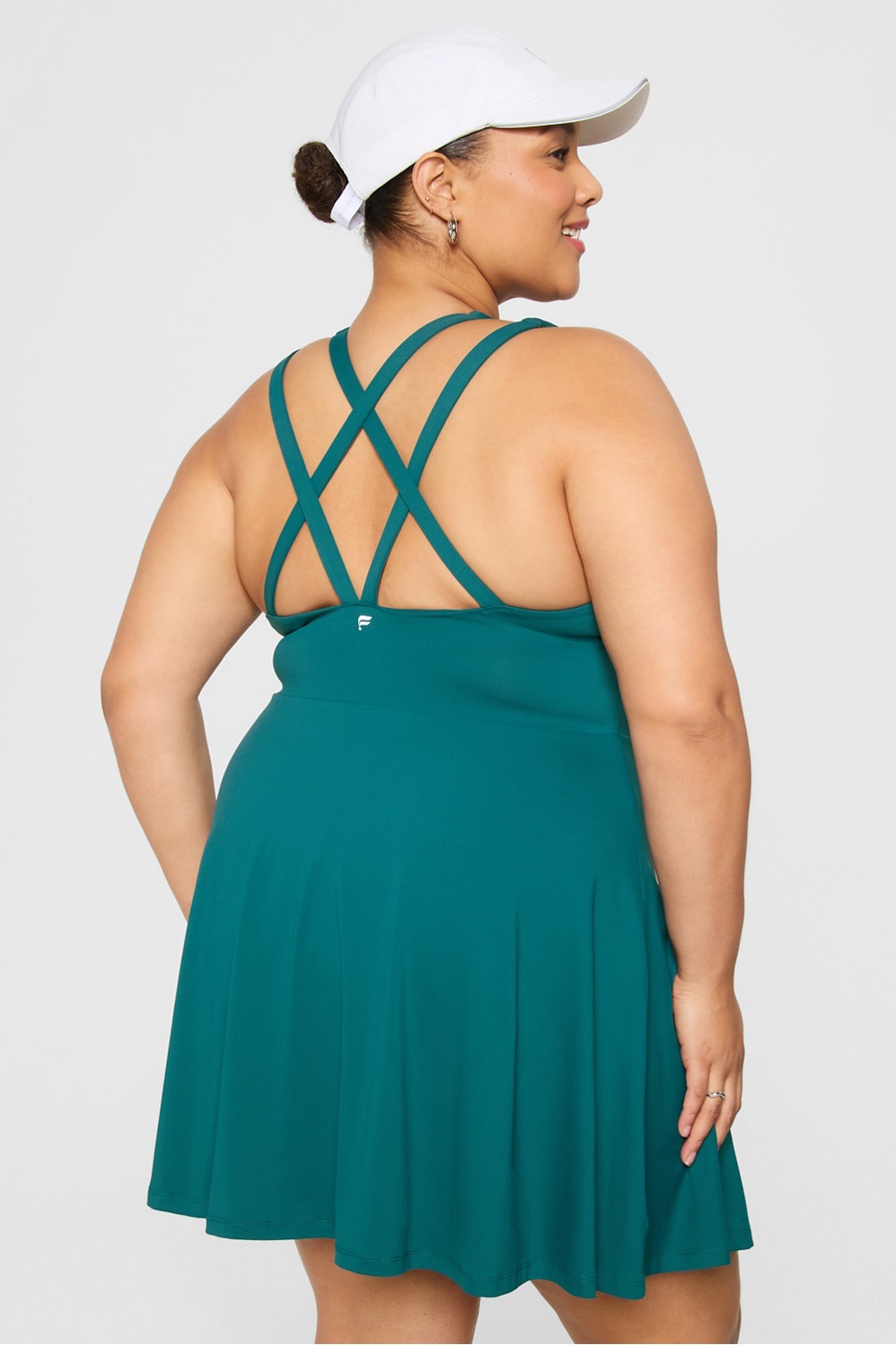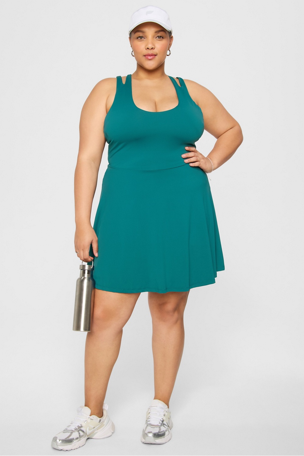 Boost it or lose it. This lightweight, breathable performance dress features built-in shorts with pockets, a built-in bra, and the signature Boost strappy back. What more could you want? Dress Length by size – XXS-XL: 32 1/4