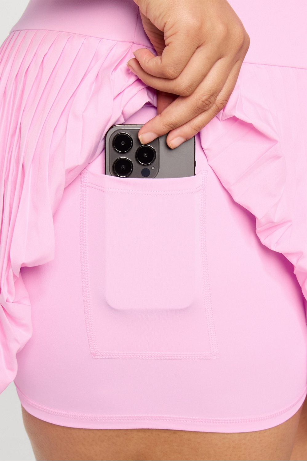 Low impact, high style. This pleated dress is your go-to for everyday wear. You’ll love how the built-in bra with removable cups and the inner short (with pocket!) make it as functional as it is cute. Dress Length by size – XXS-XL: 29 1/4″ XXL/1X-4X: 31 3/4″