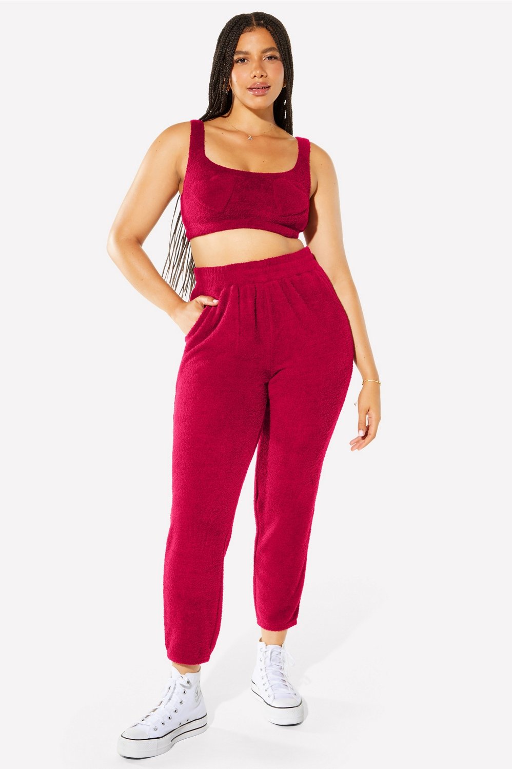 The soft, cozy fabric you love now in a cute and ultra-comfy bra you’ll want to lounge in 24/7. This heart-adorned style features stabilizing lining to keep the tiddies in place and an encased elastic band that gives you a lift.