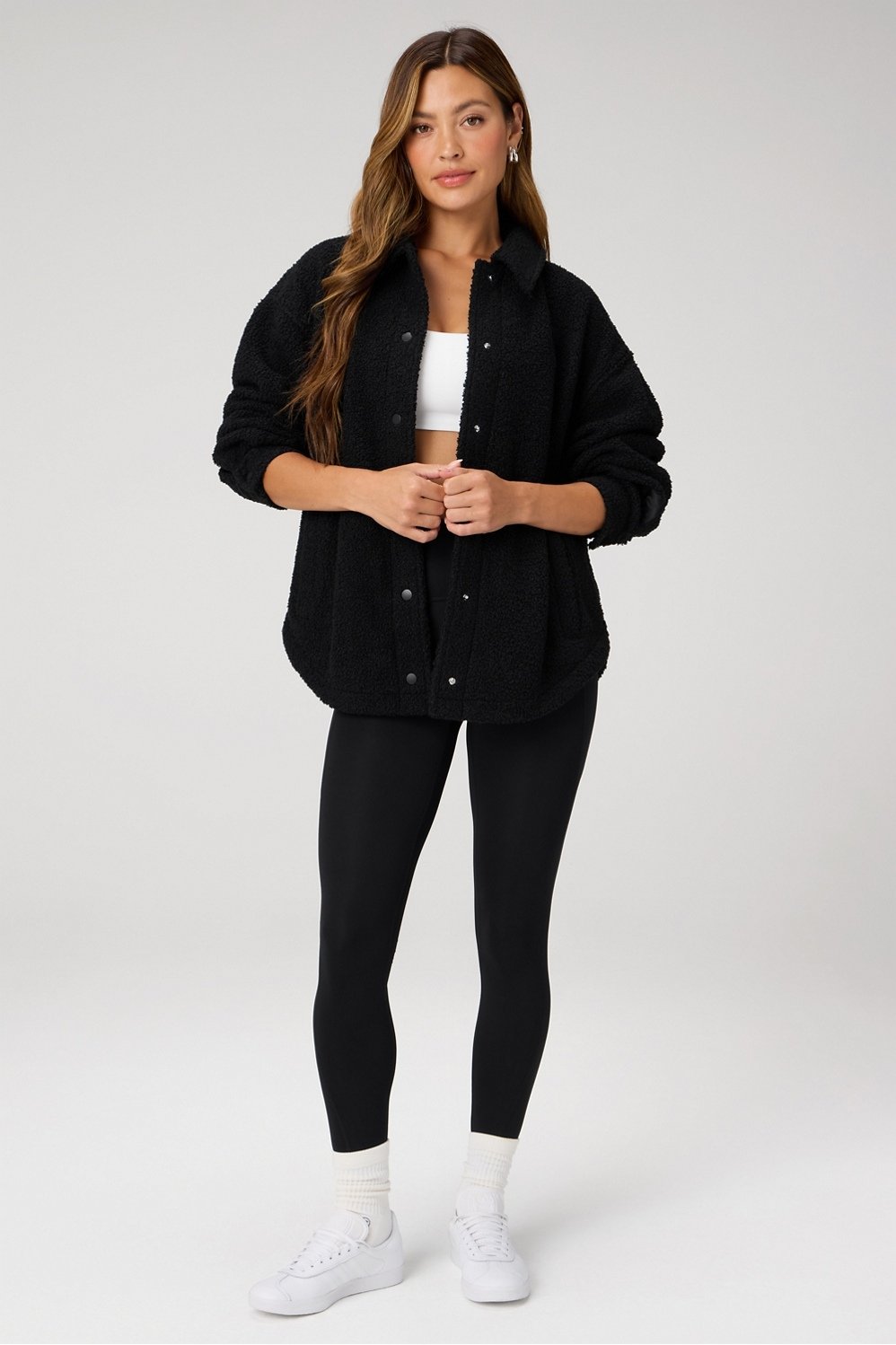 The finishing touch for your fall and winter rotation. Soft teddy fabric in a relaxed shacket fit with a snap-button closure and two side pockets.