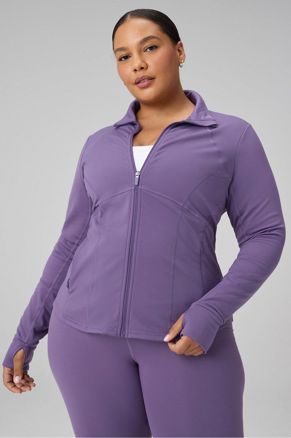 Cold weather, meet your match. This full-zip jacket is built to hustle through chilly days with moisture-wicking, shape-holding power, and 4-way stretch. Plus, it’s got contouring details that flatter your curves — no lie.