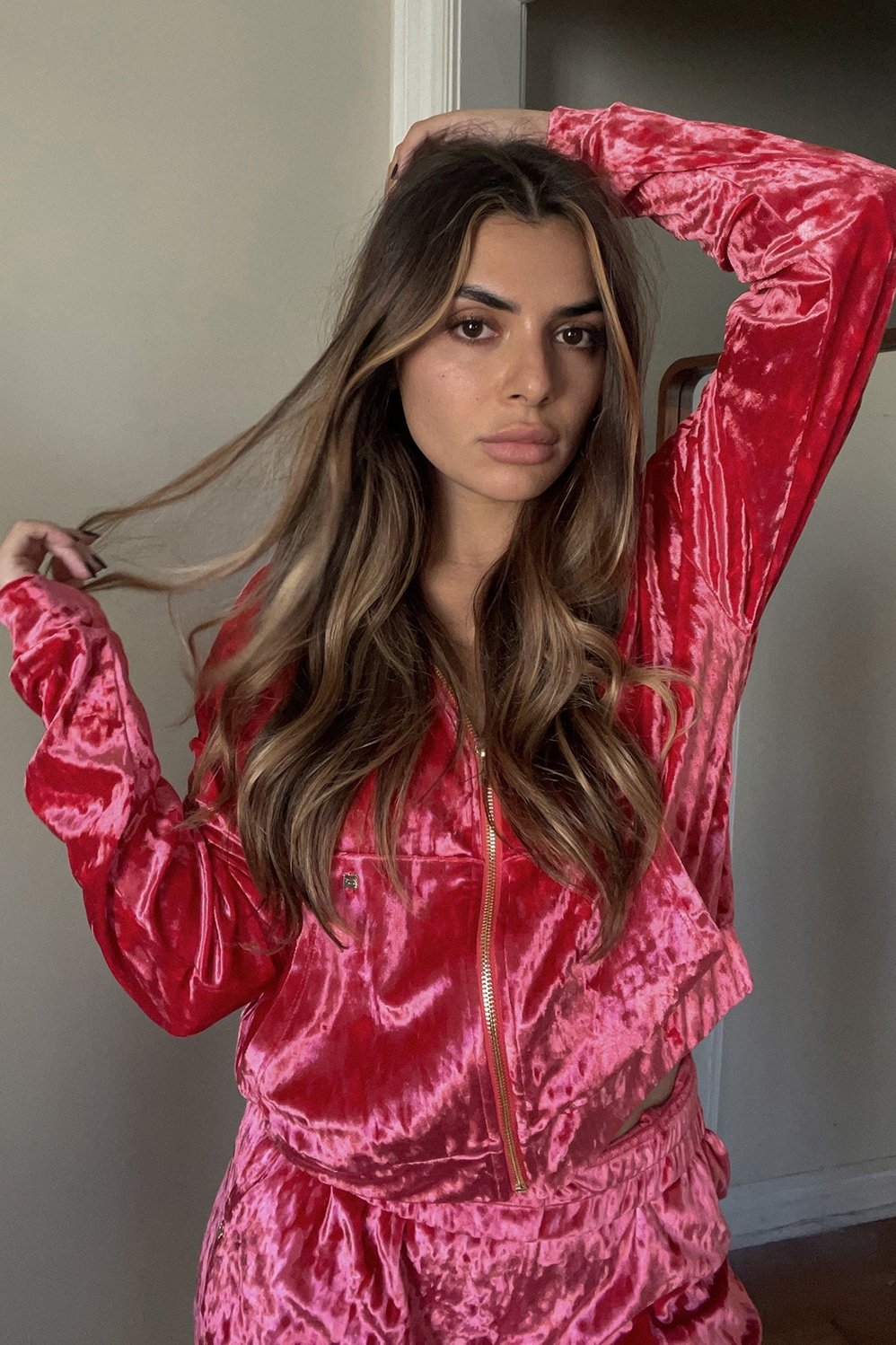 We upgraded the basic, hooded sweatshirt with luxurious, plush velour fabric that’s soft to the touch.